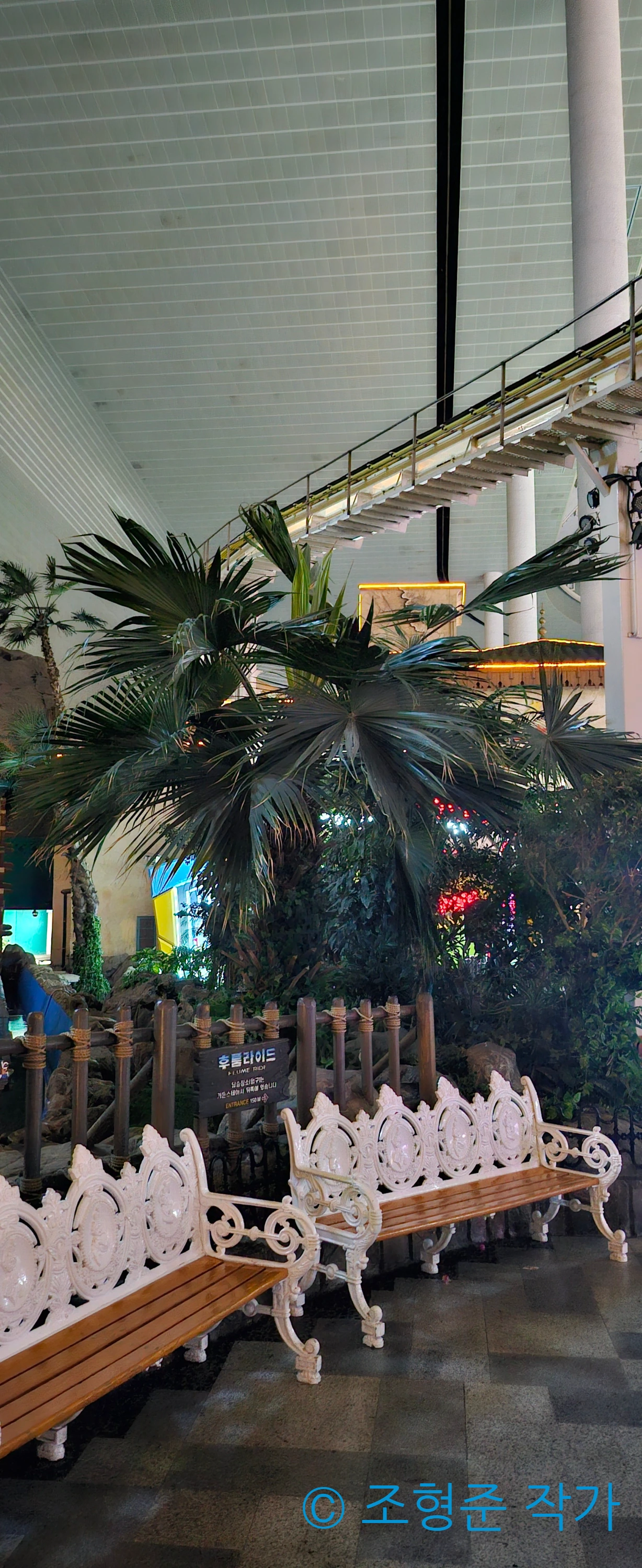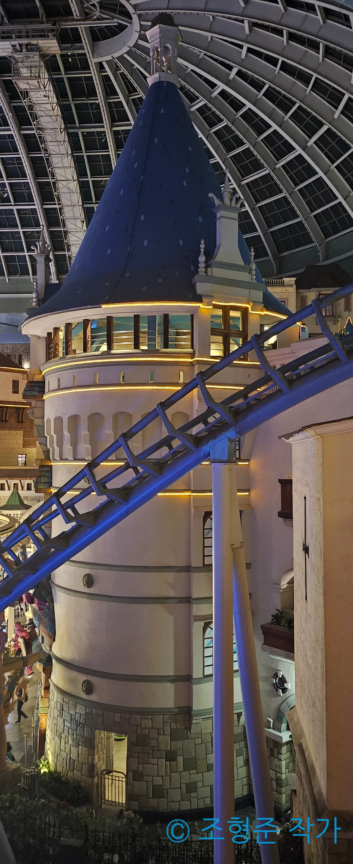 이렇게 후렌치 레볼루션의 루프 구간에 있는 다리도 사진으로 남기고 운행이 종료된 풍선비행이나 후룸라이드의 한적한 모습도 담을 수 있는 유일한 시간이 어트렉션 운행이 종료될 때 뿐이다. 그래서 사진으로 담아봤다. 오늘의 마지막 사진은 입구에 있는 에스컬레이터를 타면 바로 보이는 커다란 풍차였다. 야간에는 풍차에 달린 조명까지 켜지기 때문에 이보다 멋진 피날레 사진은 없다는 생각이 들었다, 풍차를 다 찍고 나서 곧바로 나가며 오늘 하루도 무사히 끝났다.