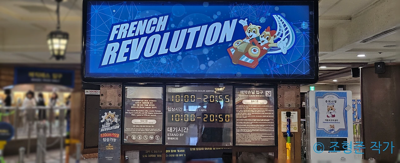 월드 오브 라이트는 이번에도 만족스럽게 봤다. 이에 대한 후기는 이미 이전에 올렸기 때문에 여기서는 언급하지 않겠다. 이후 막간을 활용해서 후렌치 레볼루션 막차를 탔다. 진짜 내가 탄 게 오늘의 마지막 운행이었다. 덕분에 맨 앞자리를 독점할 수 있게 되었다. 후렌치 레볼루션은 실내 롤러코스터 중에서는 가장 스릴을 극대화를 시켜서 좋아한다. 그런데 맨 앞자리까지 혼자서 타니 이보다 좋을 수 없었다. 이후 모든 어트렉션은 대기 종료라서 아무런 미련 없이 롯데월드 어드벤처를 나갔다.