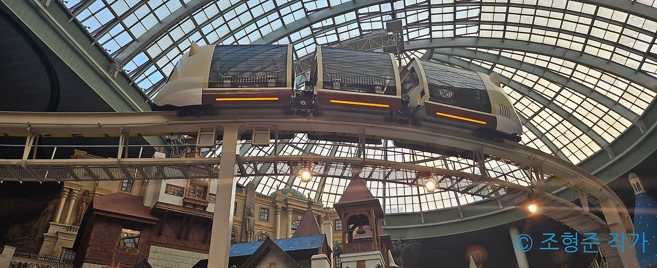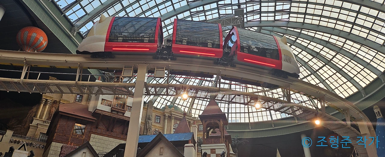 오늘은 롯데월드 어드벤처를 자주 오지 않았다면 절대 알 수 없는 마니아 사이에서만 알려진 작은 비밀을 말하고자 한다. 그래서 이번에는 핵심적인 어트렉션만 타게 되었다. 그 전에 이번에도 월드 오브 라이트를 보기 위해서 미리 알고 있었던 명당 자리에서 기다렸다. 퍼레이드 시간은 오후 8시이기 때문에 약 2시간 정도를 기다려야 했었지만 그럴 만한 가치가 있는 퍼레이드인 것은 부정할 수 없었다. 게다가 통창에서 비치는 석양과 월드 모노레일이 절로 조화를 이루고 있어서 좋았다.