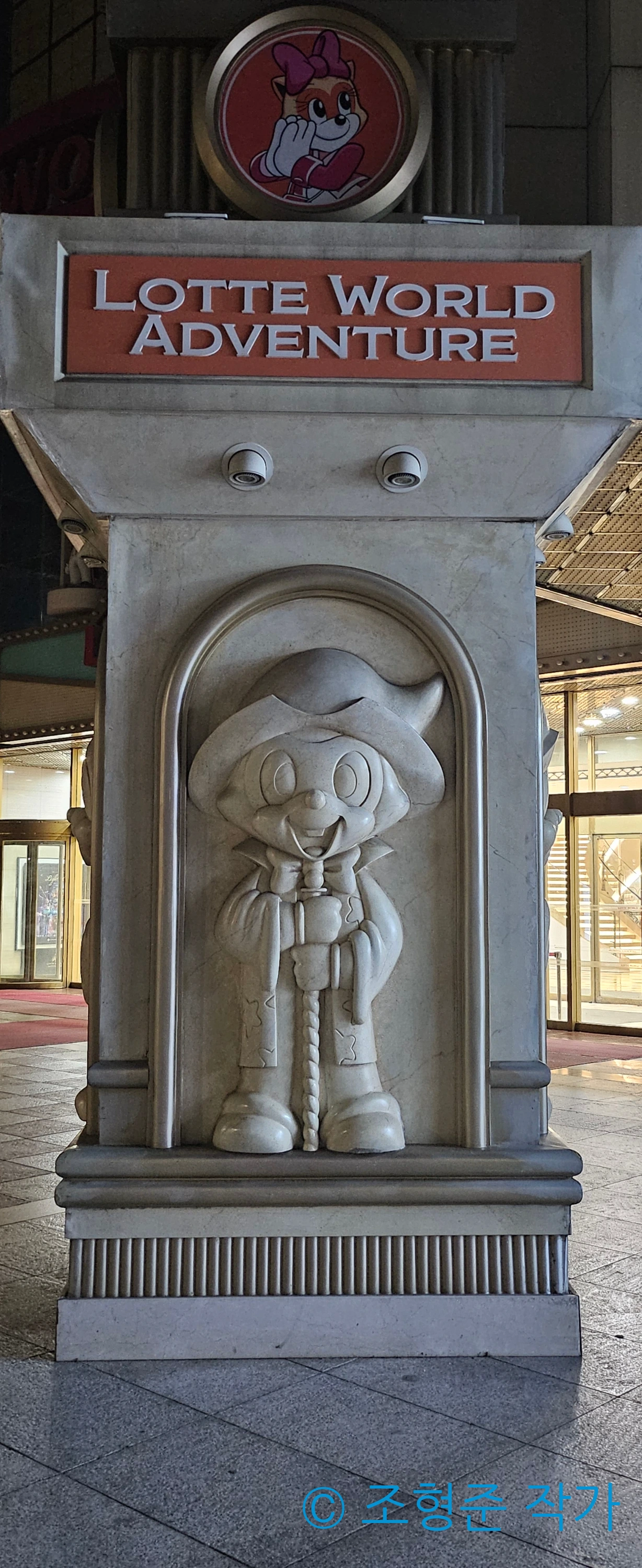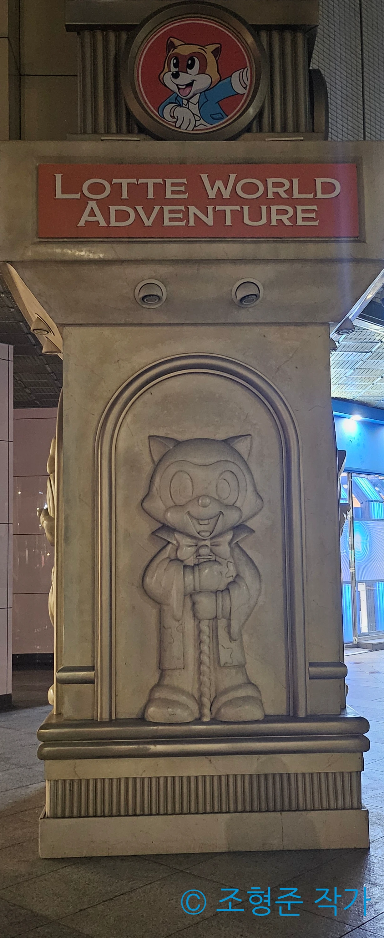 이후 밖에 나가면 내가 말한 이스터 에그를 만날 수 있다. 바로 롯데월드 어드벤처의 숨겨진 입구로 가면 두 기둥에 로티와 로리가 새겨져 있는 걸 볼 수 있다. 각 기둥당 로티와 로리가 두 개씩 새겨져 있는데 각각 다른 모습이라서 비교하는 재미도 있다. 그리고 위를 바라보면 롯데월드 어드벤처 로고와 시계까지 볼 수 있다. 이건 정말 롯데월드 어드벤처를 몇 차례 온 사람이라면 절대 알 수 없는 곳에 있기 때문에 이게 어디에 있는지 정확히 안다면 단언컨대 롯데월드 어드벤처의 마니아라고 단정할 수 있다. 이렇게 오늘은 오직 롯데월드 어드벤처의 마니아들만 알고 있는 이스터 에그에 대해 알아봤다. 그럼 내가 직접 촬영한 이스터 에그를 보여주며 마치겠다.