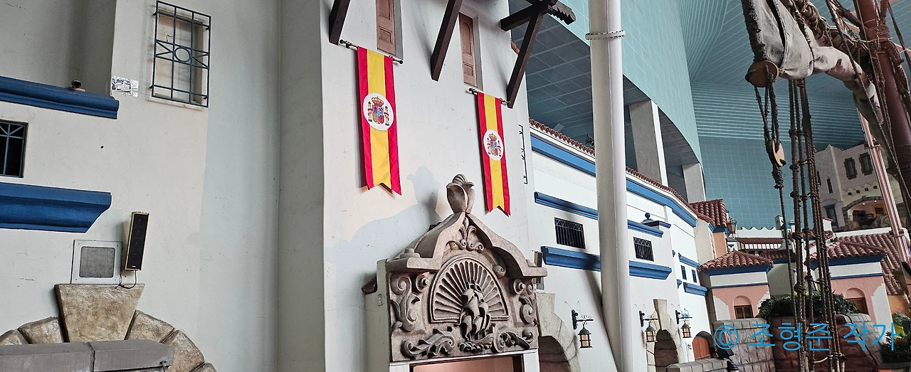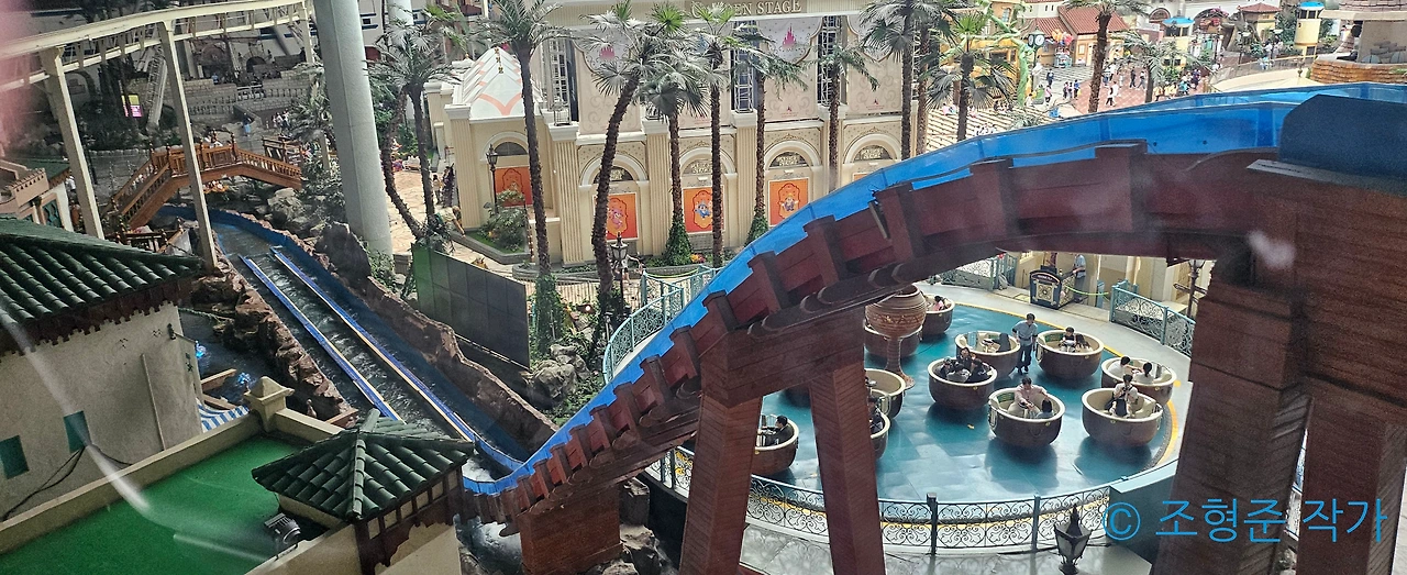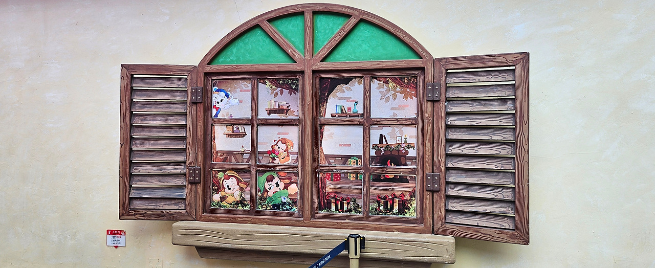 이후 입구 근처에 있는 창문 형태의 그림을 찍고 나서 곧바로 월드 모노레일을 탔다. 월드 모노레일을 탑승해보면 후룸라이드의 레일도 더 자세히 볼 수 있어서 이를 보는 재미도 있었다. 아쉽게도 오늘의 날씨는 너무 흐려서 매직 아일랜드까지 경유하지 못했다. 그래서 약 3분 동안 어드벤처 전경을 보는 걸로 만족해야 했다. 그래서 단 한 번만 타고 곧장 스페인 해적선을 탔다.