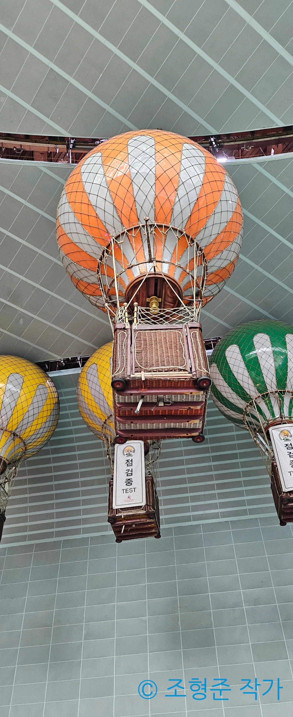 다음 어트렉션은 풍선비행이었다. 풍선비행은 내가 탄 어트렉션 중 자이로드롭에 이어서 두 번째 높이를 자랑하는 어트렉션이었다. 월드 모노레일과 달리 풍선비행을 타야 보이는 숨은 글씨도 매력적이었다. 그 외에도 풍선비행은 진짜 사람이 없지 않는 한 혼자서 못 타고 다른 사람과 같이 타야 해서 본의 아닌 스몰 토크를 해야 했다. 그러므로 풍선비행이 위로 올라갈 때부터 보이는 다양한 사람들의 반응을 보는 재미가 아주 쏠쏠했다. 물론 그렇게 친분이 생겨서 서로 명함을 주고 빋을 때도 있었다.