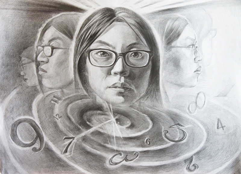자화상을 과제로 받았을 때, 흘러가는 시간 속의 내 모습을 그려보았다. 모든 것은... 변해간다.