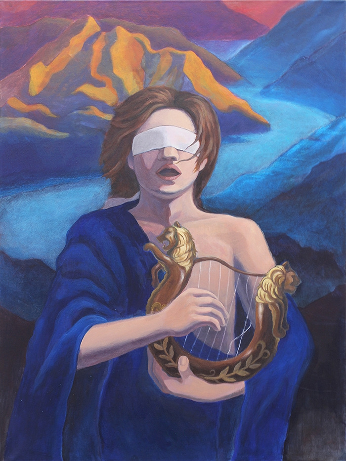 이제 다시는 뒤돌아보지 않으리라는 마음을 굳게 먹은 오르페우스가 울음을 삼키며 노래하고 있다.