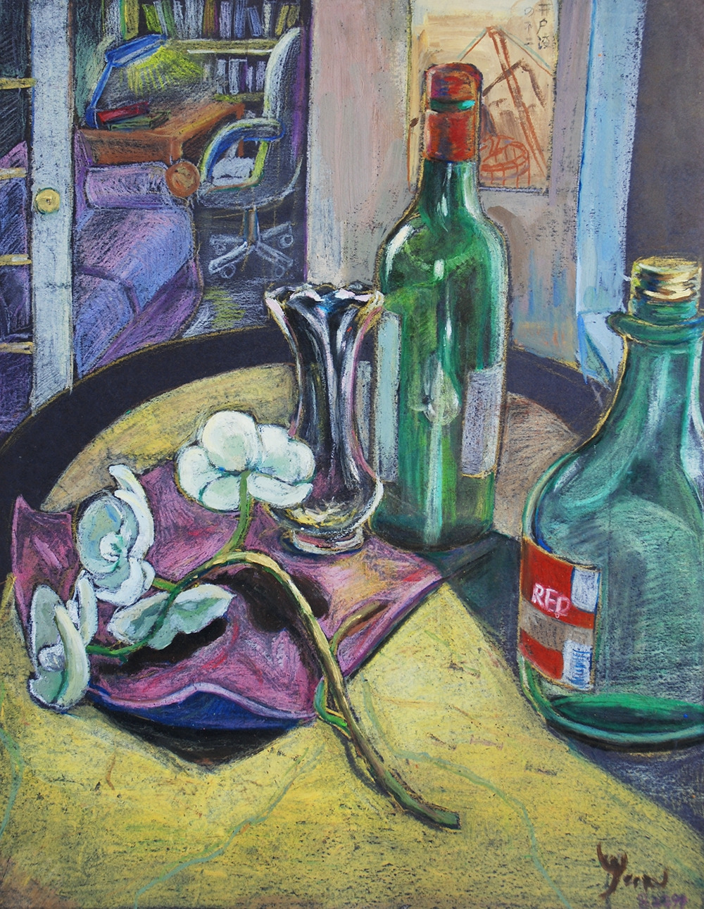 유리병과 꽃이 놓인 정물화, 그 멀리 선생님의