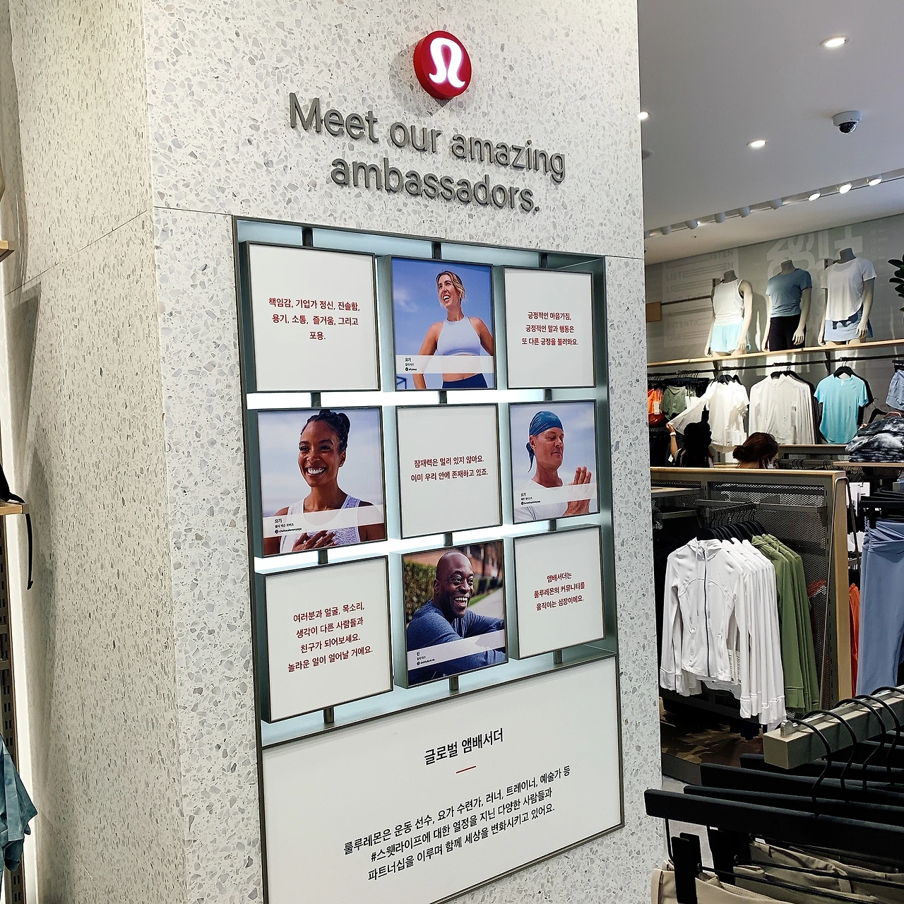 나는 얼마 전 ‘더현대 서울’에 있는 룰루레몬의 매장에 방문했다. 이곳은 올해 5월에 오픈한 룰루레몬의 오프라인 매장이다. 룰루레몬의 매장은 다른 스포츠 브랜드 매장보다 깔끔하고 공간의 여백이 있었다. 여백 곳곳에는 룰루레몬의 건강한 이미지를 여실히 보여주는 모델과 땀 흘리는 삶에 대한 메시지가 가득했다. 이러한 배치는 고객들로 하여금 건강한 자극과 영감을 불러일으킨다.
