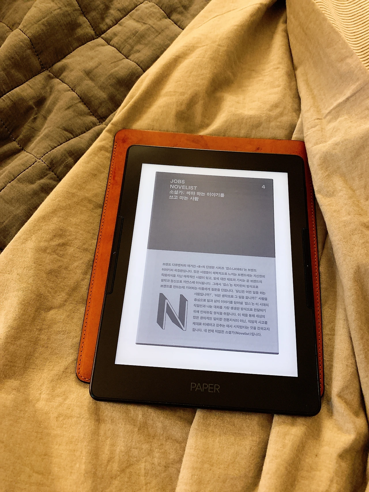 나는 평소에 내가 좋아하는 매거진 B가 전자책으로도 서비스되었으면 좋겠다는 생각을 해왔기 때문에 들뜬 마음으로 매거진 B와의 미팅에 참석했다. 그때 만난 매거진 B의 에디터는 내가 생각했던 만큼 멋진 톤 앤 매너를 가지고 있었다. 본인이 직접 인터뷰한 인터뷰이들과 직접 편집한 책에 대한 애정이 듬뿍 느껴지는 미팅이었다. 나도 덩달아 그 책들을 애정 하게 되어 직접 리뷰를 쓰고 홍모를 많이 하고 다녔던 기억이 난다. 당시 전자책으로 서비스한 매거진 B의 책은 잡스 시리즈 중 소설가와 에디터였다. 이 두 책은 계속 글을 써야겠다는 생각을 만들게 해 준 고마운 책이다.
