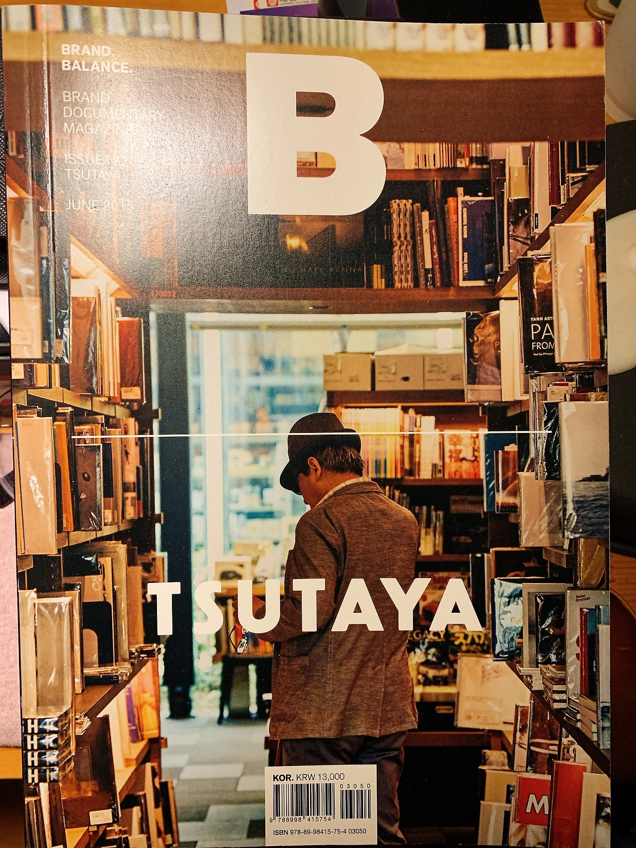 2015년에 출간된 매거진 B 츠타야는 내게 강력한 이미지를 심어주었다. 중절모를 쓴 중년의 신사가 책장 앞에서 책을 보는 모습이 츠타야 편의 표지였는데 매거진을 열기 전부터 나는 츠타야에 흠뻑 취할 수밖에 없었다. 매거진에서는 츠타야가 취향에 대해 고민하는 다양한 세대가 모이는 멋진 공간임을 알려주었다.