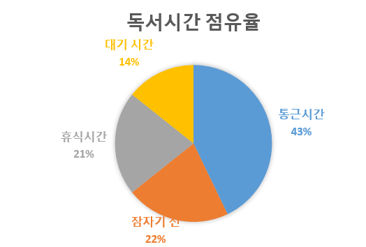 시간을 두고 편하게 장시간 집중할 수 있는 시간이 생기면 종이책을 보는 편이지만 전자책은 그 외의 모든 시간에 봅니다. 대표적으로 출퇴근, 업체 미팅 전, 이동 시간, 잠자기 전에 활용하는 편인데요. 이 시간들을 모두 담아보면 휴일에 시간 내어 책 읽는 시간 못지않게 활용할 수 있습니다. 자투리 시간을 사용하게 되면 어떤 명확한 의식을 가지고 책을 읽었다는 만족감을 동반합니다. 제 기준으로 보면 하루 책 읽는 시간은 약 1시간 30분 +@입니다. 물론 항상 이렇게 집중해서 읽지는 못하고 최소 1시간에서 최대 2시간 내로 독서에 집중하곤 합니다. 우리가 보통 1시간에서 2시간 정도 집중할 수 있는 완벽한 시간에서 종이책을 읽는다면 전자책은 5분 이상 생길 수 있는 모든 자투리 시간에서 읽기를 시작합니다. 위에서 얘기한 것과 같이 자투리 독서를 통해 다독할 수는 있지만 완독률을 떨어트려 완전 독서보다는 멀티 독서 성향으로 변하게 됩니다.