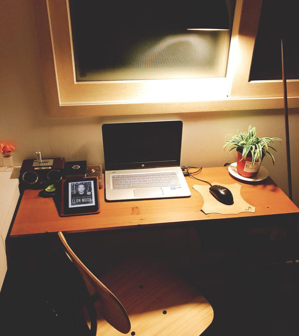 그다음 오래 머물고 있는 회사 내의 작은 책상이다. 특히 회사의 책상을 누가 봐도 내 자리인 것처럼 만드는 걸 좋아하는 편이다. 나름대로 꾸민다고 생각하고 이것저것 살림살이를 들여놓는데 남들이 보기에는 그저 지저분한 책상으로 보일 수도 있다. 읽지는 않지만 읽을법한 책들 잘 마시지 않지만 언젠가 마시겠다고 다짐하고 곁에 둔 티백들 잠시 멍 때리며 응시하곤 하는 녹색의 화분들 그곳에 앉으면 묘하게 편안함을 느끼곤 한다. 내게 익숙한 것들로 채워진 그곳은 나만의 공간을 점유하고 있다는 만족감을 주기 때문이다.