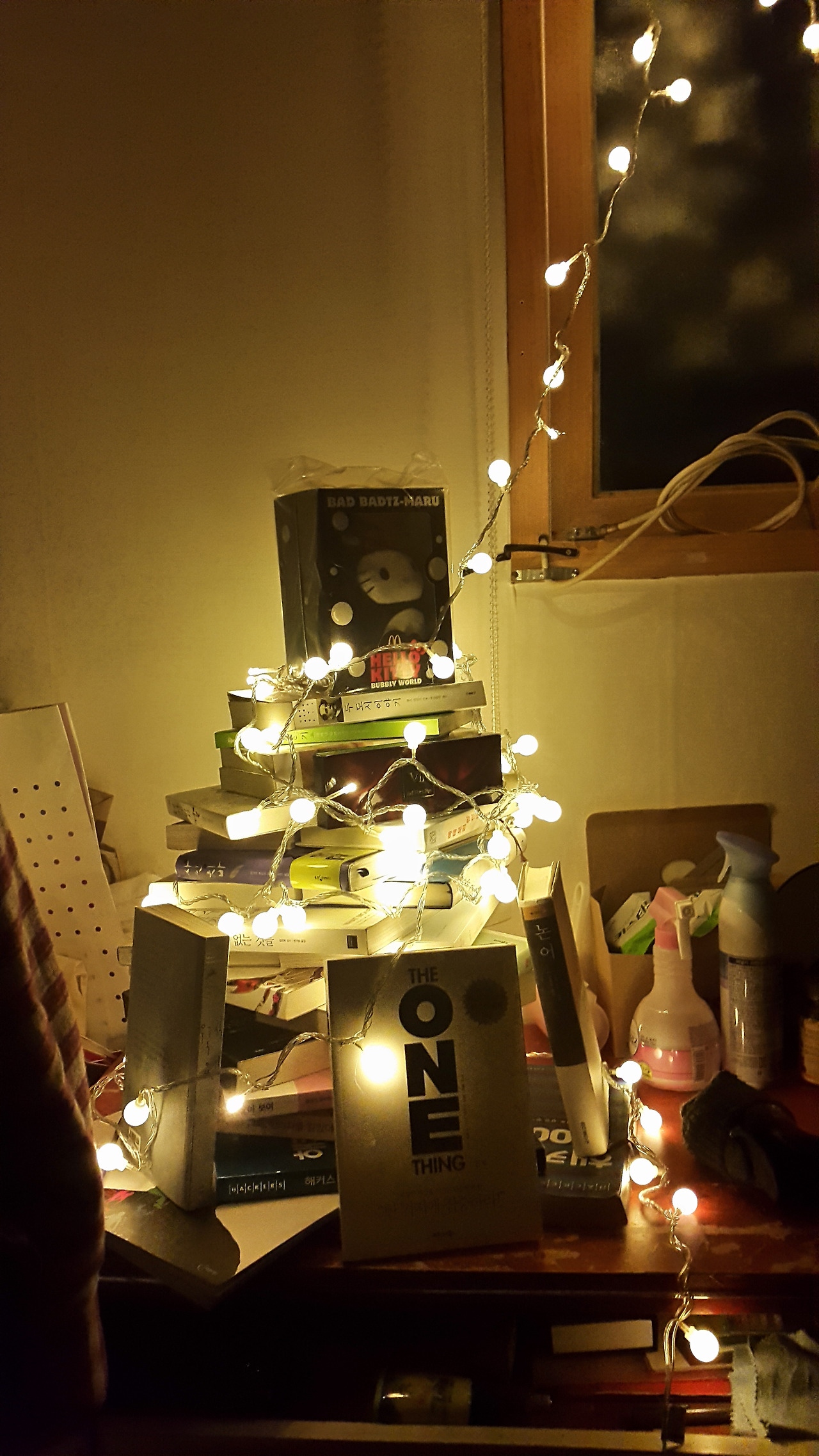 6평 남짓한 원룸에서 사회생활을 시작한 나에게는 책을 둘 공간은 사치였다. 300권이 넘어가면서 집이 책으로 어질러지는 경우가 일수였다. 크리스마스에는 책으로 트리를 만들기도 했는데 이러다 가구가 필요하면 종이책으로 만들어도 되겠다는 생각을 하곤 했다. 물론 그것도 공간이 넉넉한 사람이나 할 수 있는 사치일 뿐 나는 내가 잠잘 곳을 위협할 정도로 책이 쌓이게 되면 한 번씩 중고서점에 방문하여 되팔았다. 20만 원어치 책들을 중고로 팔면 2~3만 원 정도의 수익이 생기는데 그날은 돈가스 정식을 사 먹고 시장에서 제철 과일 한 바구니를 사 오곤 했다. 마음의 양식을 팔아 육체의 양식을 얻는 아이러니한 삶의 루틴이었다.