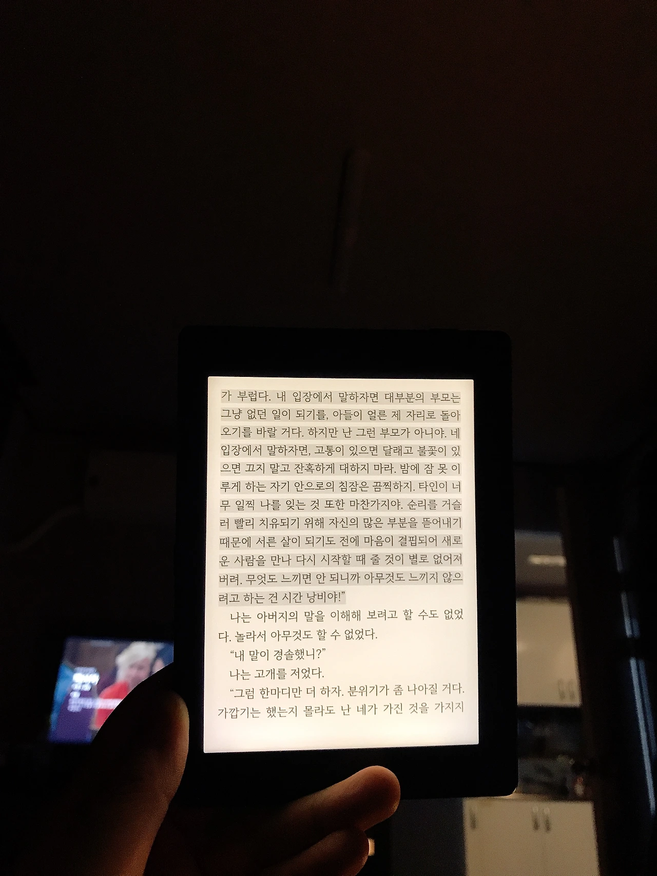 이런 가능들을 무겁게 담았지만 기기는 한결 더 가벼워졌다. 나는 기존에 아는 화면이 더 큰 페이퍼 프로를 써왔는데 이 둘의 무게는 각각 173g, 250g이다. 3세대 리디페이퍼는 이번에 나온 아이폰 11 (194g)과 갤럭시 10 (198g) 보다 가볍다. 솔직히 말하자면 카페나 지하철 또는 여행을 가서 유목민 독서를 하는 나의 독서 취향에 따르면 페이퍼 프로는 휴대성이 좋지 않았다. 심지어 잠자기 전에 침대에서 들고 읽다가 얼굴에 종종 떨어트렸는데 너무 아파 코에 코피가 나지 않았는지 손가락을 넣어보곤 했다. (,.)