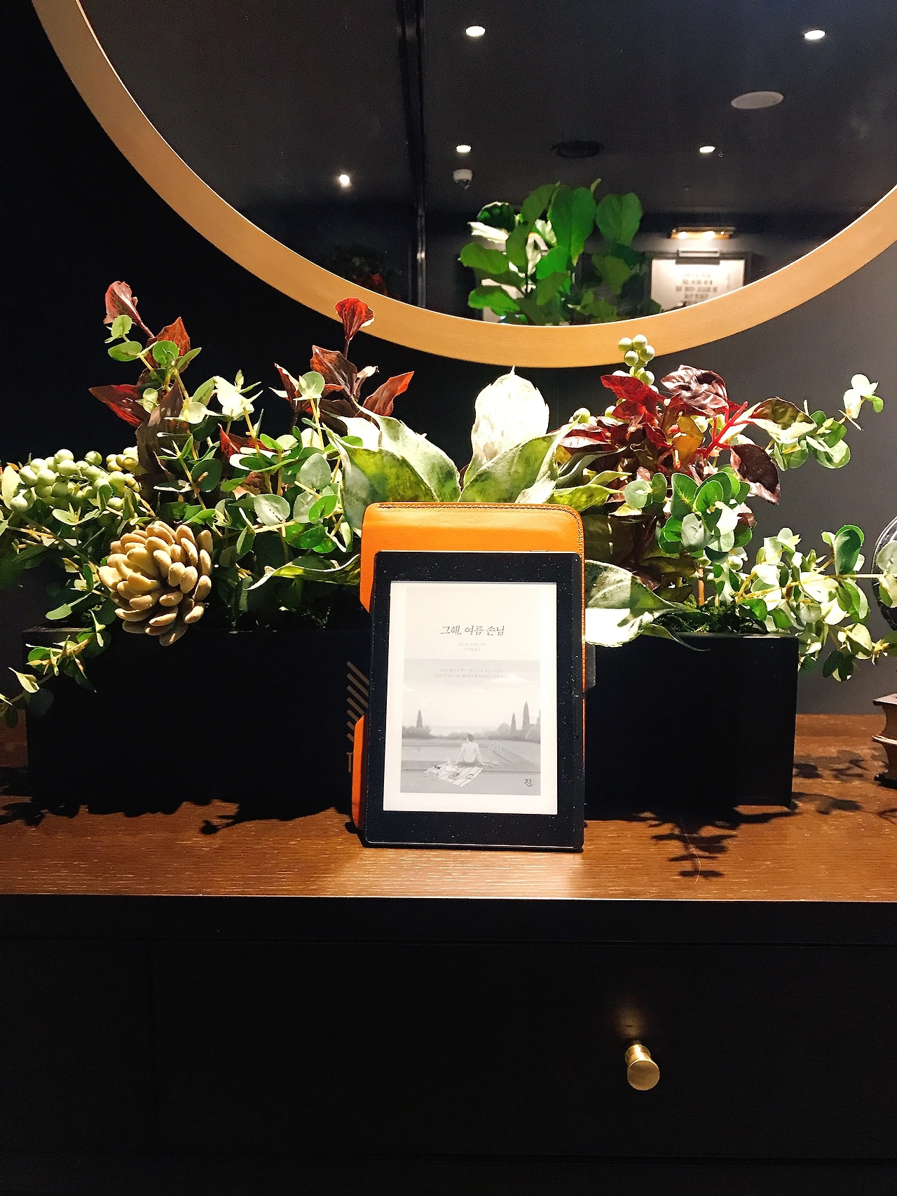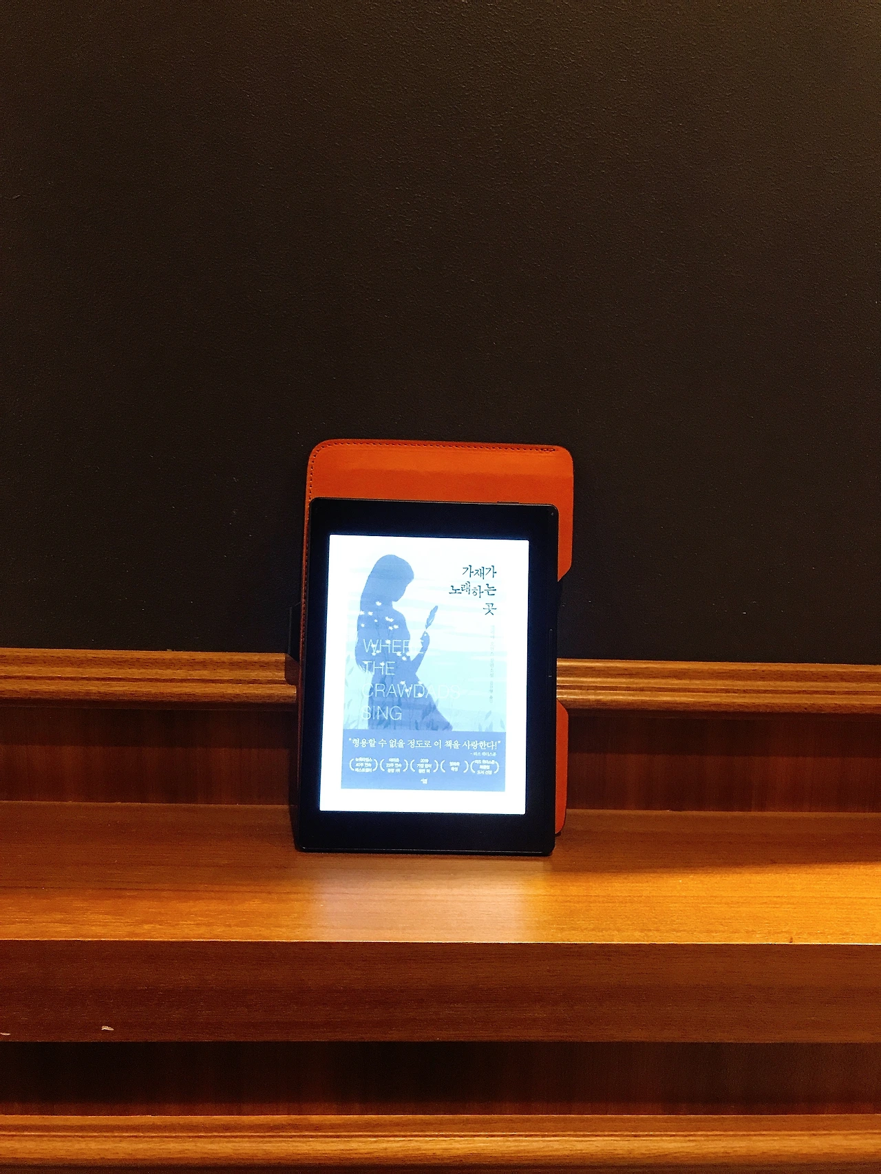 나는 보통 차가운 이미지보다 따듯한 공간을 응시하는 것을 좋아한다. 그래서 집에서도 천장에 달려있는 형광등보다 따로 구매한 주황색 LED 스탠드를 더 애용하는 편이다. 페이퍼는 프론트라이트 기능이 있어 어두운 곳에서도 스스로 빛을 밝혀 읽을 수 있는데 미색의 라이트 말고도 따듯한 색온도를 사용할 수 있다. 잠들기 한 시간 전에 보기 딱 좋은 색상이다.