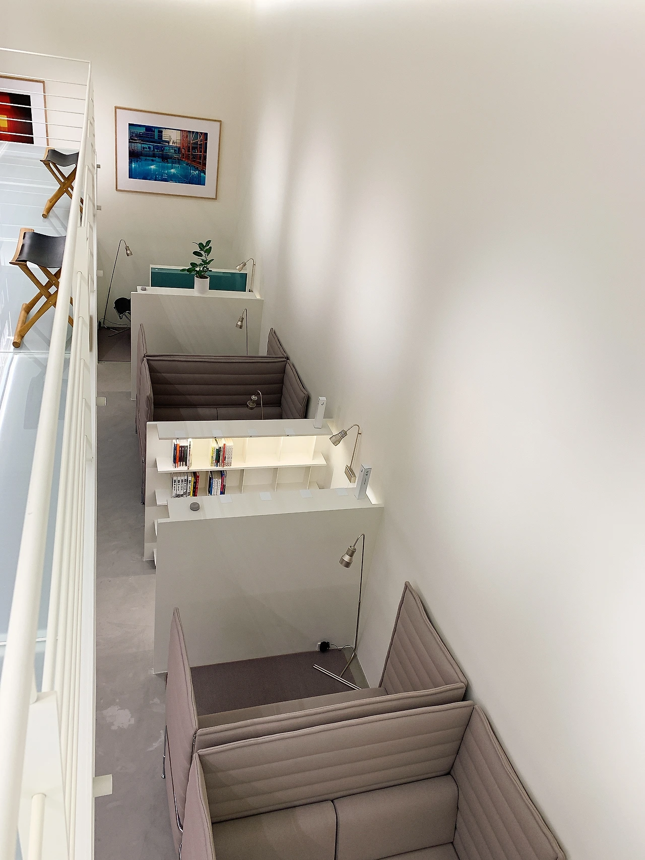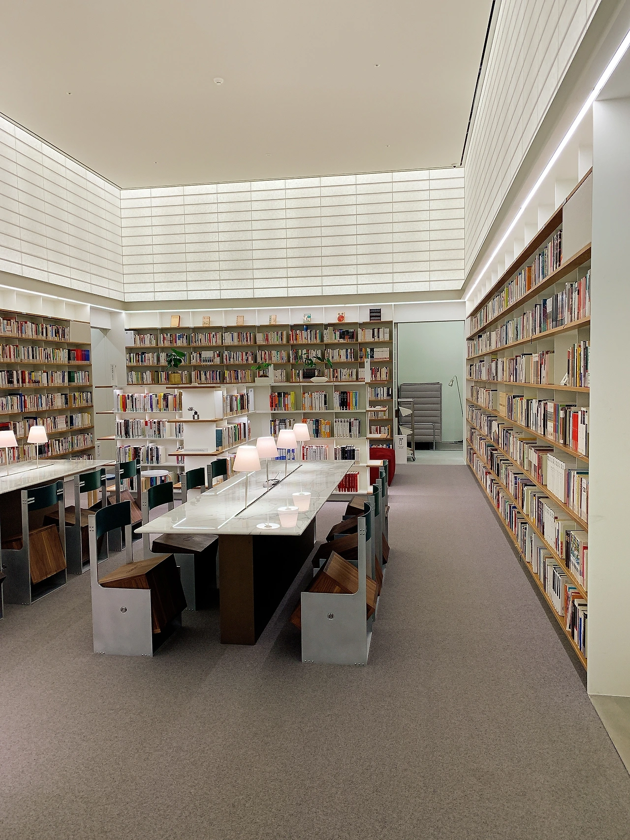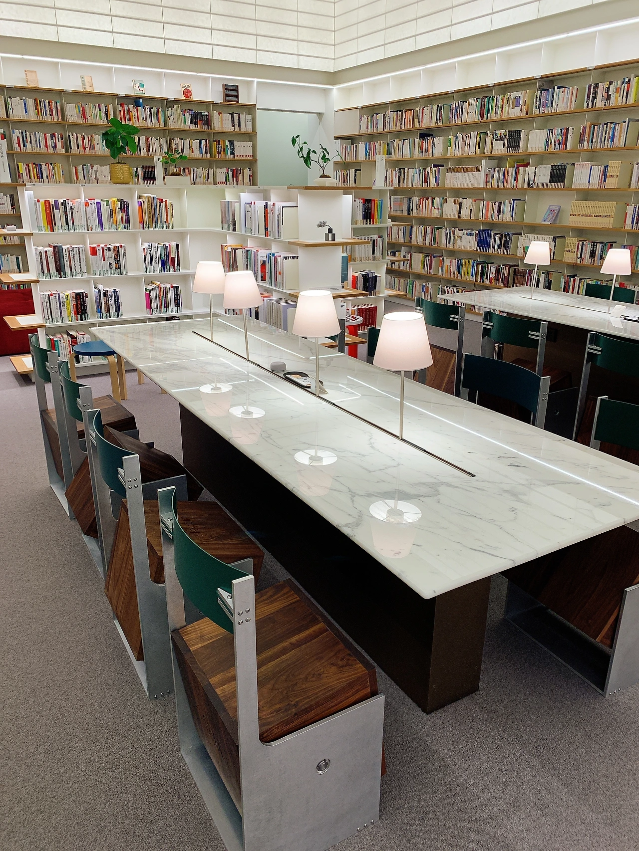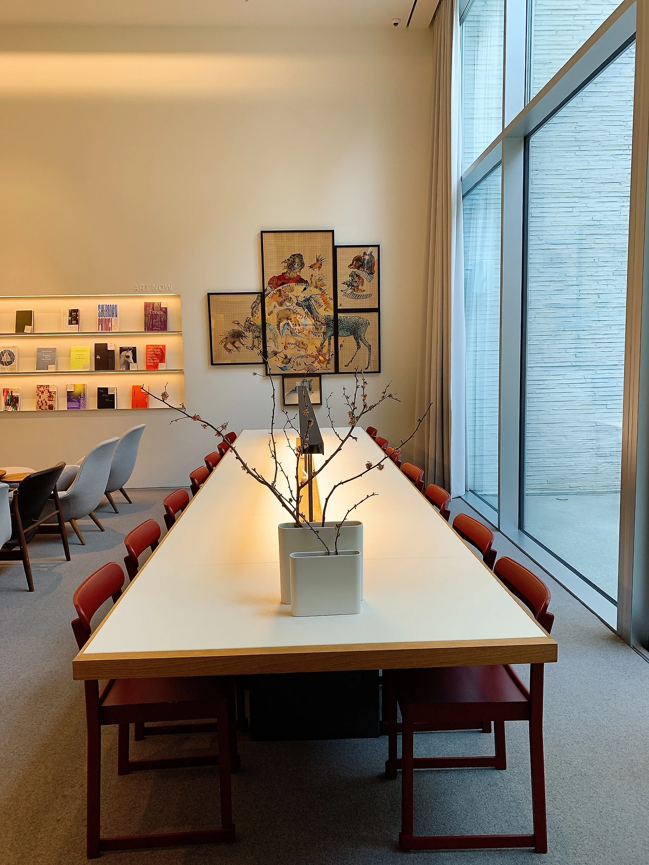 입구에서 책장을 따라 천천히 우측으로 걷다 보면 개인들을 위한 서재를 찾을 수 있다. 칸막이로 이루어진 예닐곱 개의 작은 서재 안에는 고급스러운 독서 의자가 각각 놓여있다. 덴마크 명품 가구 브랜드 프리츠 한센이나 핀란드의 아르텍 의자, 카시나의 LC4 체어 등 평소 사용해보고 싶었던 고급 서재용 의자들을 체험해볼 수 있는 기쁨을 준다. 이곳을 제외한 장소는 오픈형 공간이기 때문에 타인의 시선이 차단된 공간에서 편안한 자세로 혼자만의 시간을 갖고 싶다면 이곳을 적극 추천한다. 개인 서재의 방을 나와 맞은편으로 왼쪽 문으로 들어가면 탁 트인 예술의 방과 커다란 메인테이블이 나오는데 도서관의 전체 구역에서 가장 흥미로운 공간이었다.