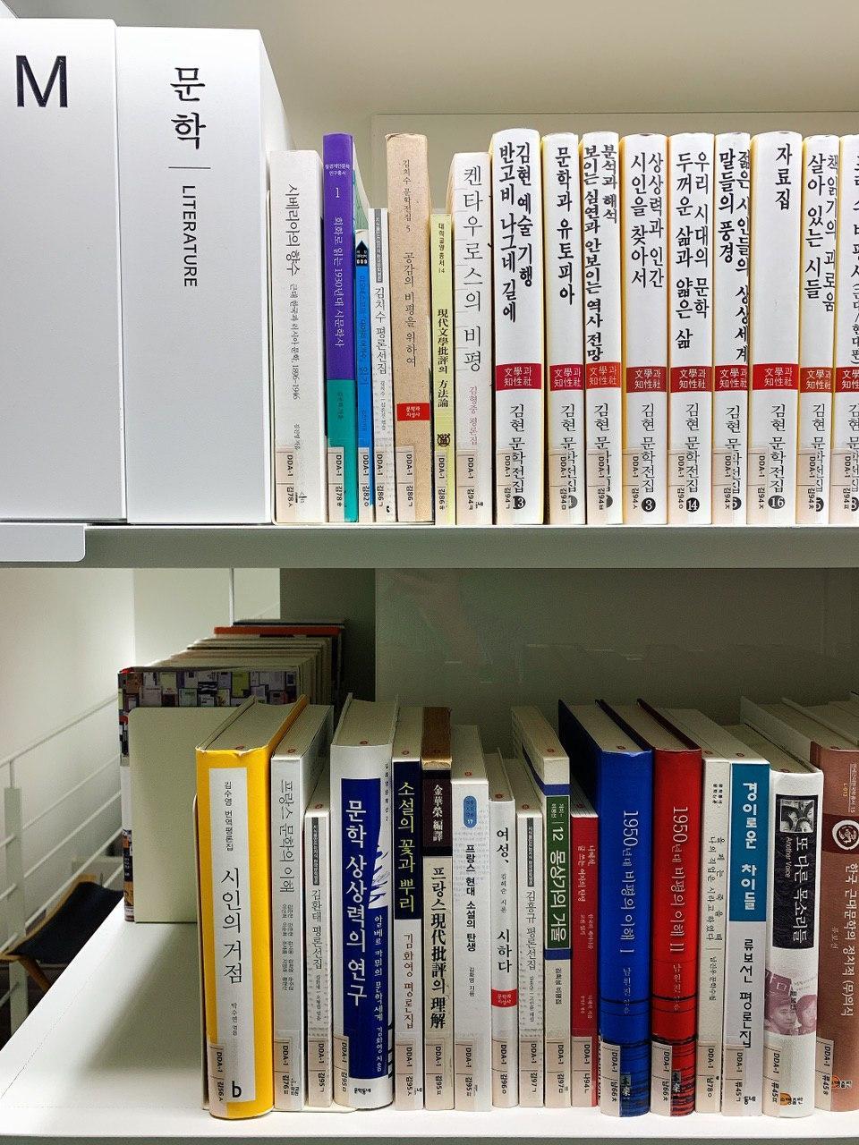 소전서림에는 약 4만 권의 양서를 보유하고 있고 그중 문학 도서가 3만 권이다. 문학 도서 비중이 유난히 높은 편인데 일반적인 종합 도서관이 아닌 문학 전문 도서관으로 기획되었기 때문이다. 메인 홀과 2층 서가는 일부 철학 코너를 제외하고 모두 문학 도서로 채워져 있다. 한 번쯤 들어본 한국 고전 문학부터 유명 해외 작가의 시리즈 도서까지 다양한 문학을 다루고 있는데 심지어 라노벨이라고 불리는 장르 소설도 2층 서가에 자리 잡고 있다. 도서관의 서재에 비치된 도서들은 각계각층의 명사들이 추천한 양서들만 선별되어 꽂혀있다. 하지만 아직 이 책들은 누군가에게 읽히는 용도라기보다는 도서관으로서의 정체성을 상기시켜주는 역할을 더 많이 하는 것 같다. 앞으로 소전서림이 다양한 책의 제안 활동을 통해 독자들을 기쁘게 해주기를 기대한다.