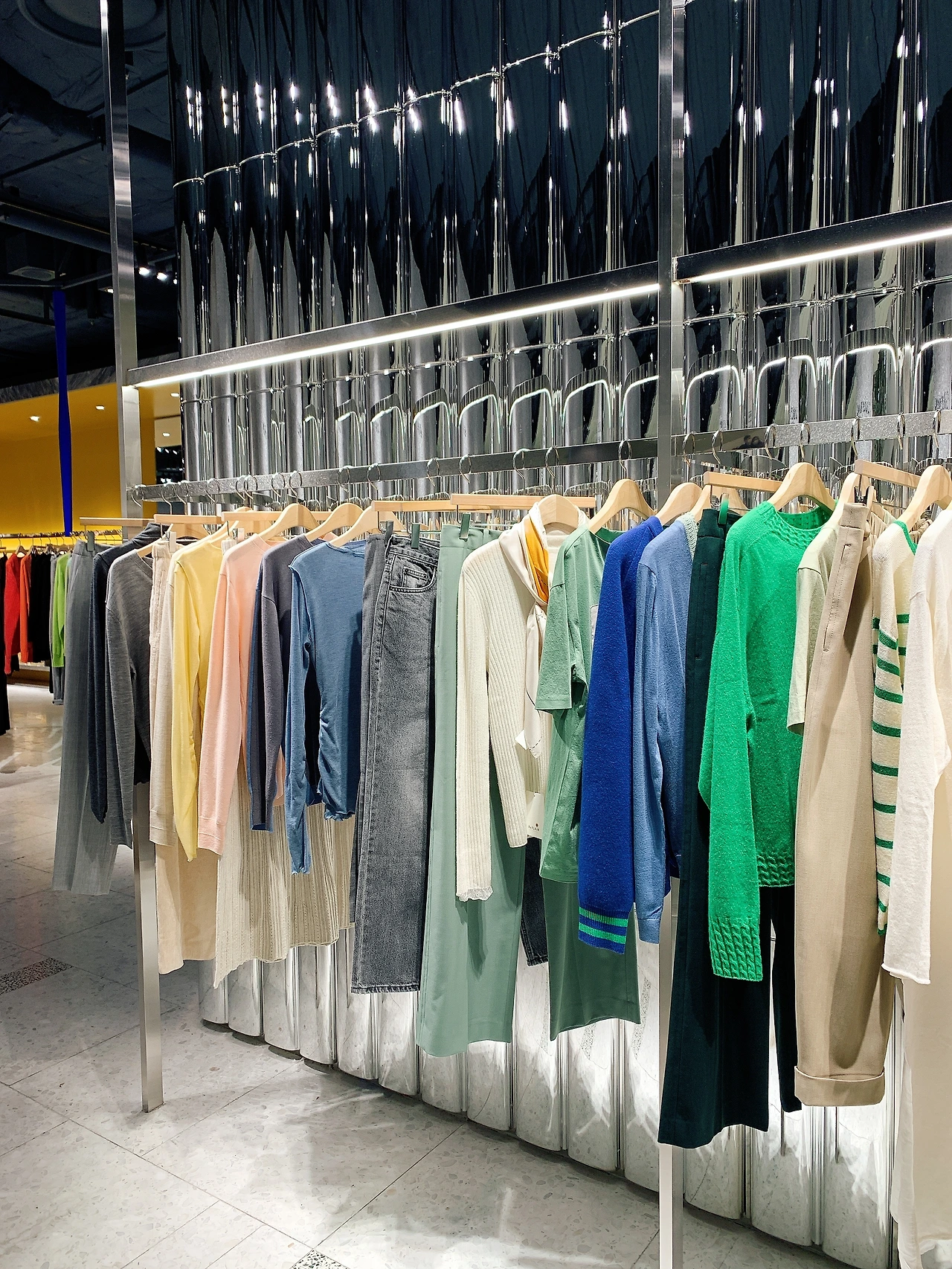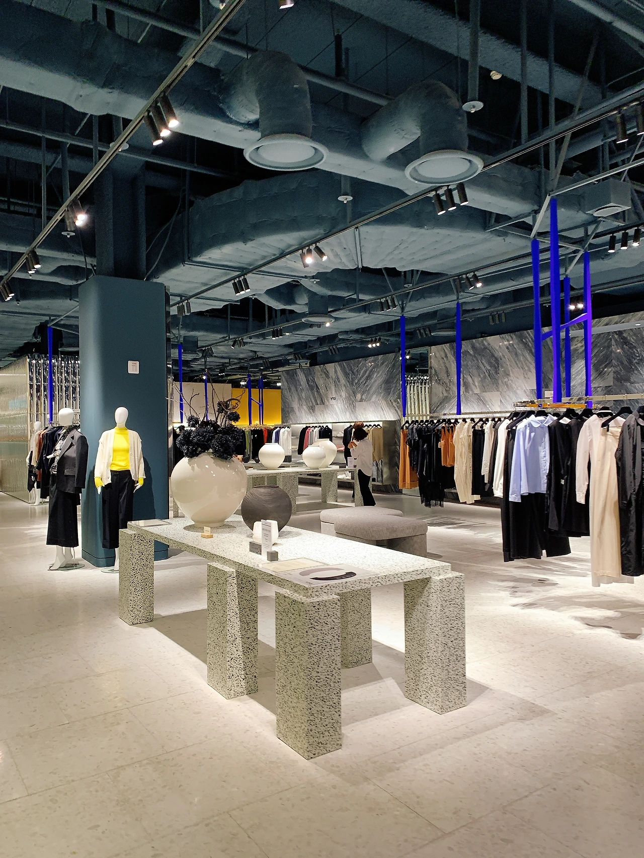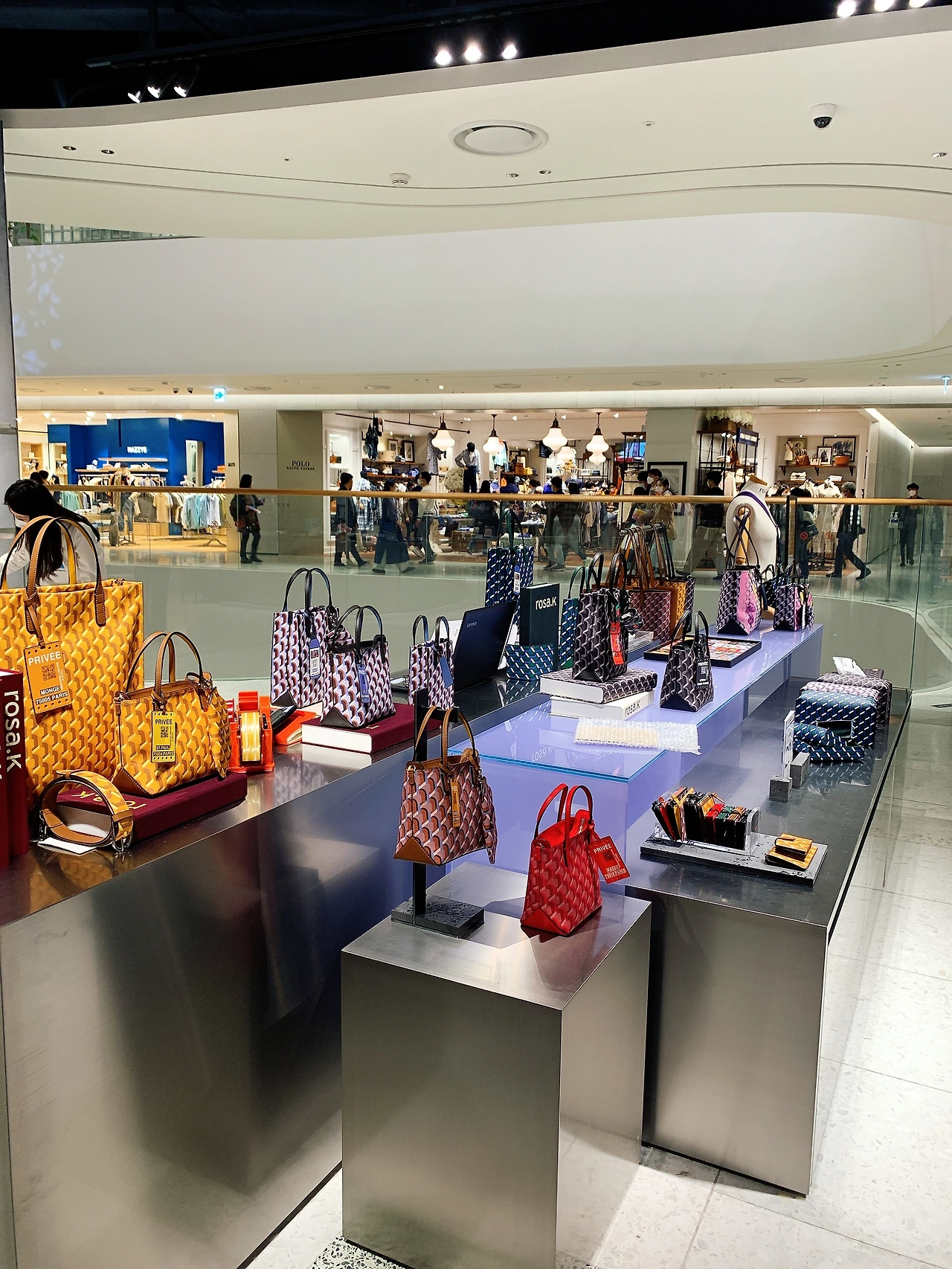 기존 백화점 몇 개를 떠올려보자 바둑판 모양으로 매장이 다닥다닥 붙어있고 통로도 매우 좁아 사람들을 피해 다녀야 한다. 심지어 1층은 온갖 화장품 브랜드가 오픈 매장 형태를 취하는데 각 매장의 직원과 불필요한 눈치 싸움을 하며 이동해야 한다. 그에 반해 더 현대 서울은 기다란 선형으로 매장이 나열되어있다. 도심에서 길을 걷다 문득 올리브영에 들어가는 것처럼 매장에 방문할 수 있었다. 매장 밖 고객의 통로도 네다섯 사람이 몰려다녀도 괜찮을 정도로 여유가 있다. 만약 이곳에서 걷다가 누군가 부딪친다면 그건 당신에게 어떤 용무가 있다고 확신해도 될 것이다.