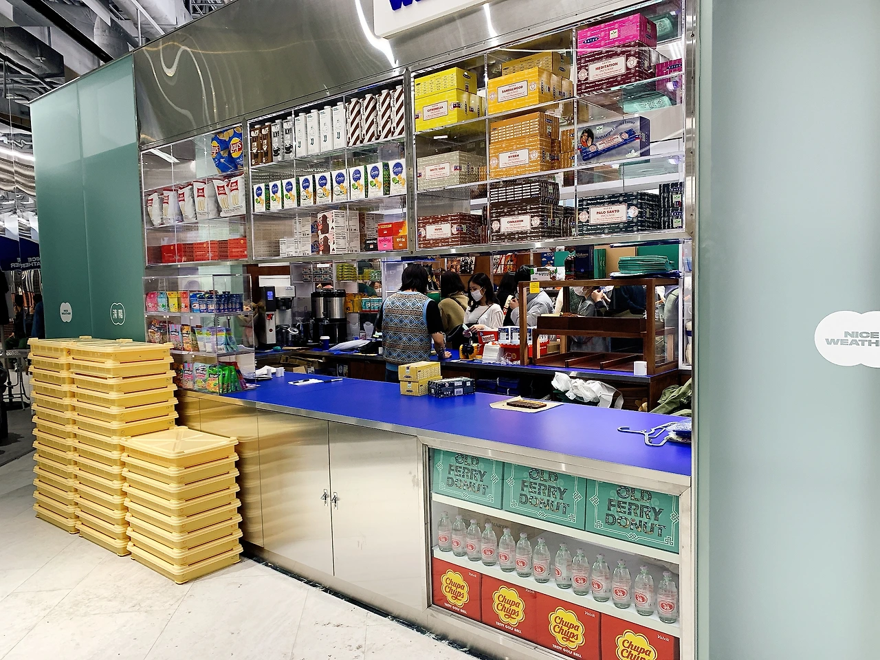 나이스웨더는 MZ세대를 위한 편의점으로 유명해진 곳이다. 모든 편의점에 다 파는 물건이 아니라 정말로 2030이 원하는 잇템들을 다루고 있다. 주요 아이템을 살펴보면 마비스 치약, 토끼 소주, 정어리 초콜릿, 인센스 스틱, 레코드판 등이 있는데 가장 인기가 많은 상품은 바로 한남동의 유명인사인 올드페리 도넛이다. 실제 더 현대 서울의 나이스웨더의 긴 줄은 모두 올드페리 도넛을 사려는 줄이었다. 이런 감각적인 식품들과 어떻게 콜라보한 것일까? 나이스웨더는 도산분식, 형훈텐동, 아우어 베이커리 등으로 유명한 CNP 컴퍼니에서 만든 편의점 브랜드다. CNP는 CULTURE AND PEOPLE의 약자로 멋진 외식 경험과 문화를 제공한다는 철학을 가진 스타트업이다.