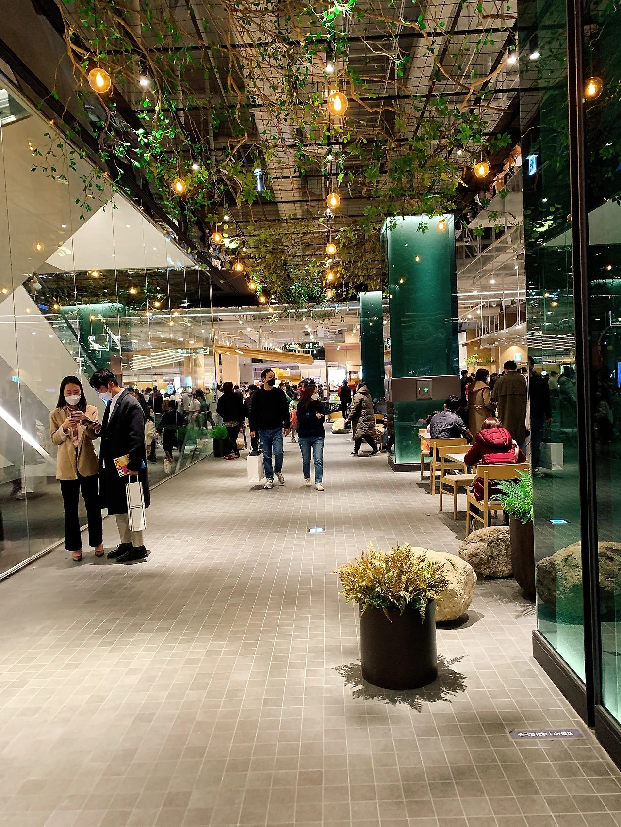 그런데 입구에 들어서는 순간 나의 걱정은 기우였다. 더 현대 서울의 공간 스케일은 수많은 인파를 담아내고도 여유 있는 모습을 보여주었다. 나의 시야에 들어오는 공간감은 놀이공원인 롯데월드와 비교해도 좋을 만큼 거대했다. 우리가 상상하는 공간의 크기를 넘어서면 우리의 인식을 넘어서는 일도 가능해진다는 걸 깨달았다. (10년 안에 쥐라기 공원이 생길 수 있겠다 싶음)