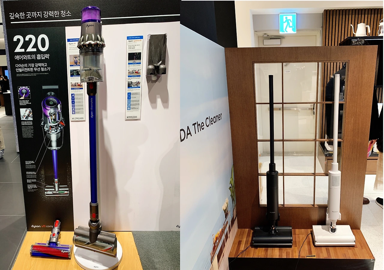(좌측 : 다이슨 청소기 / 우측 : 발뮤다 청소기)