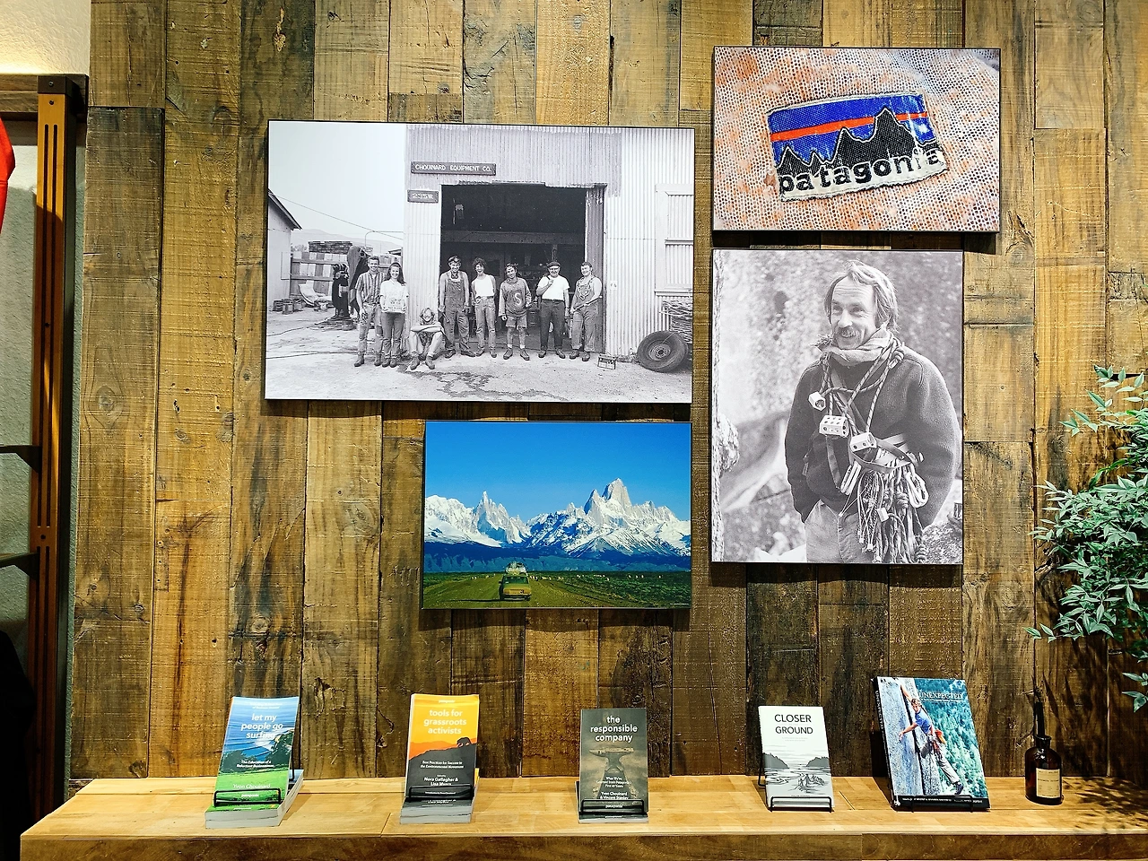(거대한 자연의 이미지와 오브젝트가 놓여있는 파타고니아 매장)