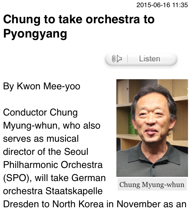 정명훈이라는 대한민국 지휘자를 앞세워, 서울시향(SPO) 현악 수석진이 가세한 합동 공연을 서울과 평양에서 진행하려 했던 것이다.