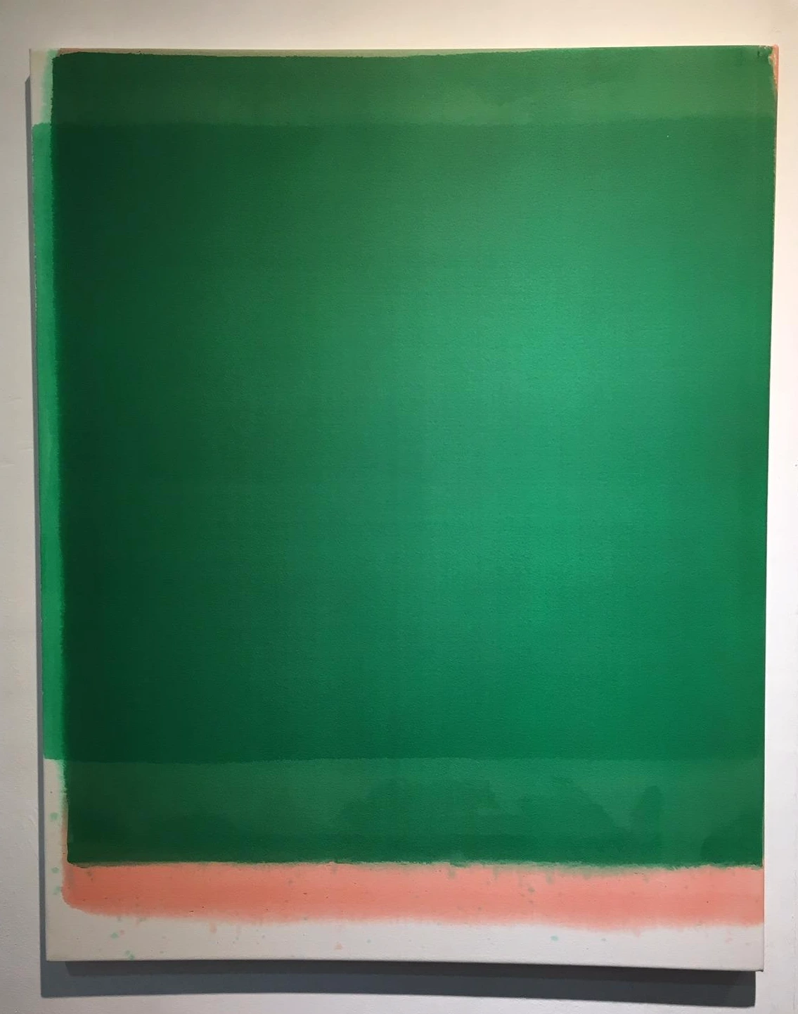 주의 깊게 선택된 단 색의 큰 붓질, 조형적 균형이 엿보이는 큰 선이 가로 세로 중심을 잡아주고, 선이 시작되거나 혹은 끝나거나, 때로는 옆 선에서 뭉치거나 섞인 색이 신비로운 풍경(색감)을 연출하기도 한다. 작가의 의도와 우연의 조화가 만든 예술. 시선을 머물게 하는 지점이기도 하다.