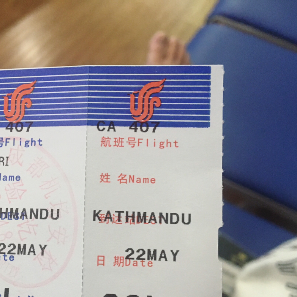굶주림에 지쳐 잠이 들었고 이른 새벽 호텔 측 모닝콜에 눈을 떴다. 호텔에서 준 간식거리를 챙겨 들고 공항으로 가는 봉고차를 탔고 무사히 카트만두행 비행기를 탈 수 있었다. 원래대로라면 곧바로 카트만두로 갔어야 했는데 출국 며칠 전에 라싸를 경유하는 일정으로 변경되었다는 메일을 받았다. 청두에서 출발한 지 얼마 지나지 않아 라싸에 도착했고 기분 탓인지 약간의 고소를 느꼈다. 그리고 광활한 풍경과 웃음기라고는 하나도 찾아볼 수 없는 긴장감 팽팽한 공항 분위기에 압도되었다. 라싸 공항에서 대기하며 네팔리와 한국 자원봉사자와 이야기를 나누다가 다시 카트만두행 비행기에 탑승을 했고 출발 30여 시간 만에 드디어 카트만두에 도착했다.(최종1_진짜최종_마지막_.txt)