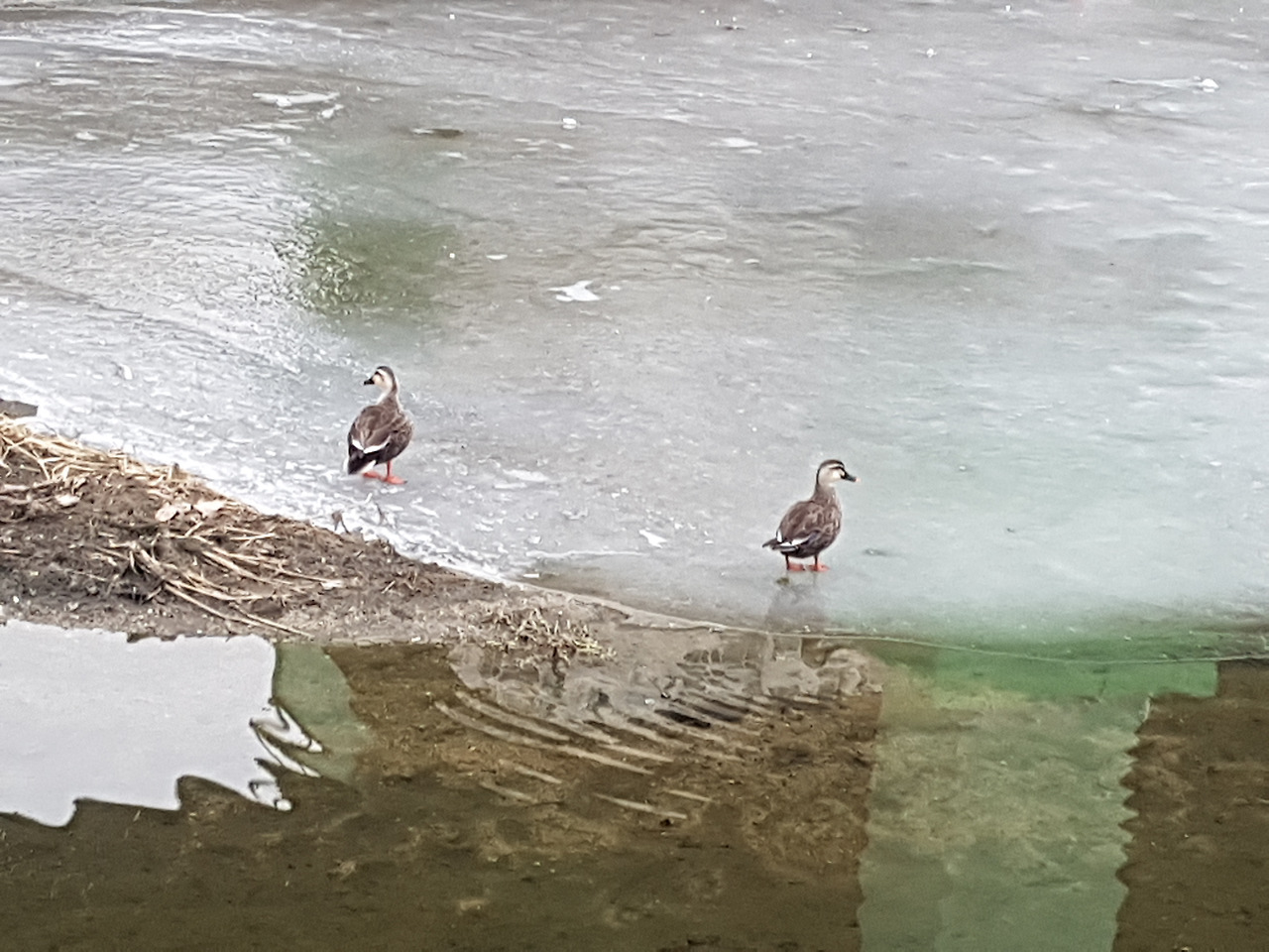개천 얼음 위 풍경