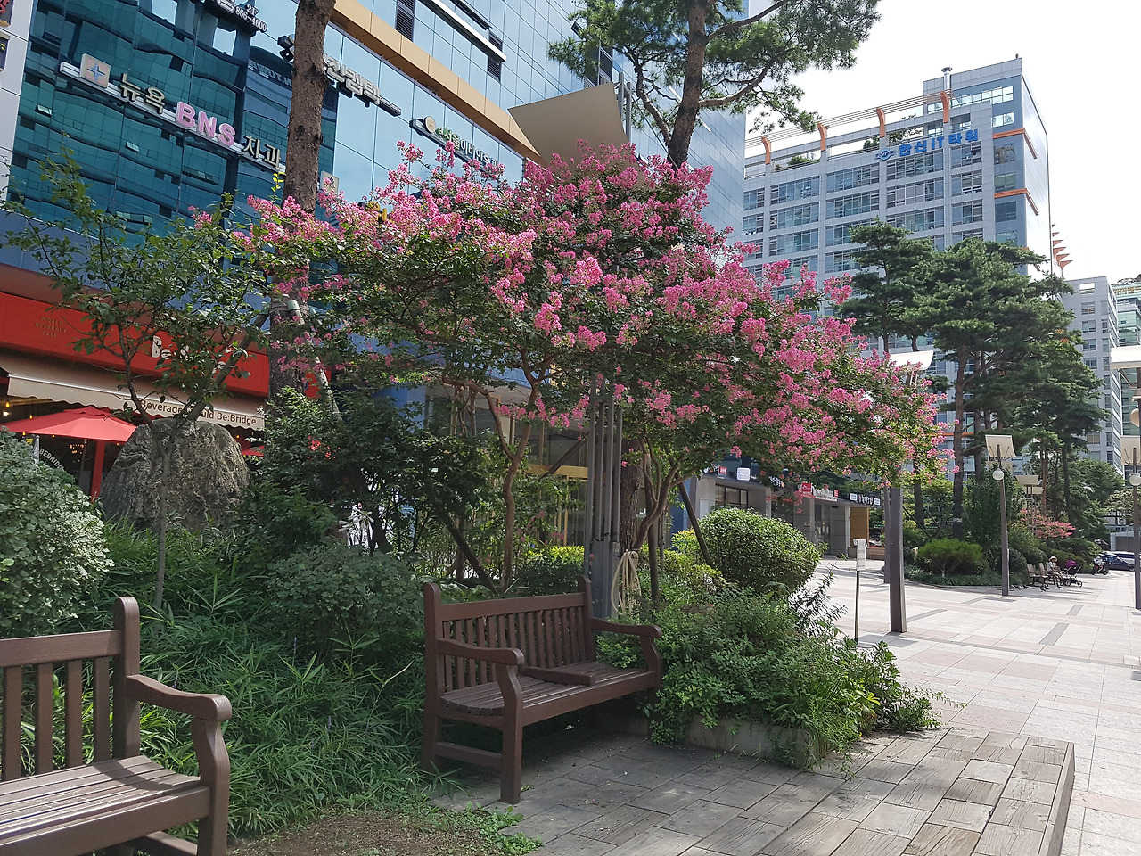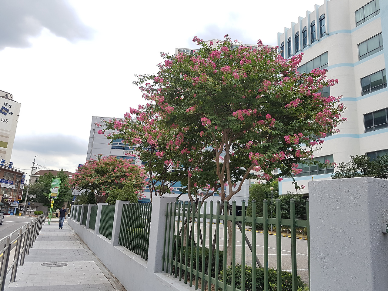 금요일 저녁 마을버스 타고 집에 가다가 찍은 배롱나무. 토요일엔 가까이에서 찍다. 배롱나무 꽃잎 색이 곱다. 금요일 저녁 하필이면 금요일 5시 40분에 지하철역에서 마을버스를 탔다. 사람들이 보통 6시에 퇴근..