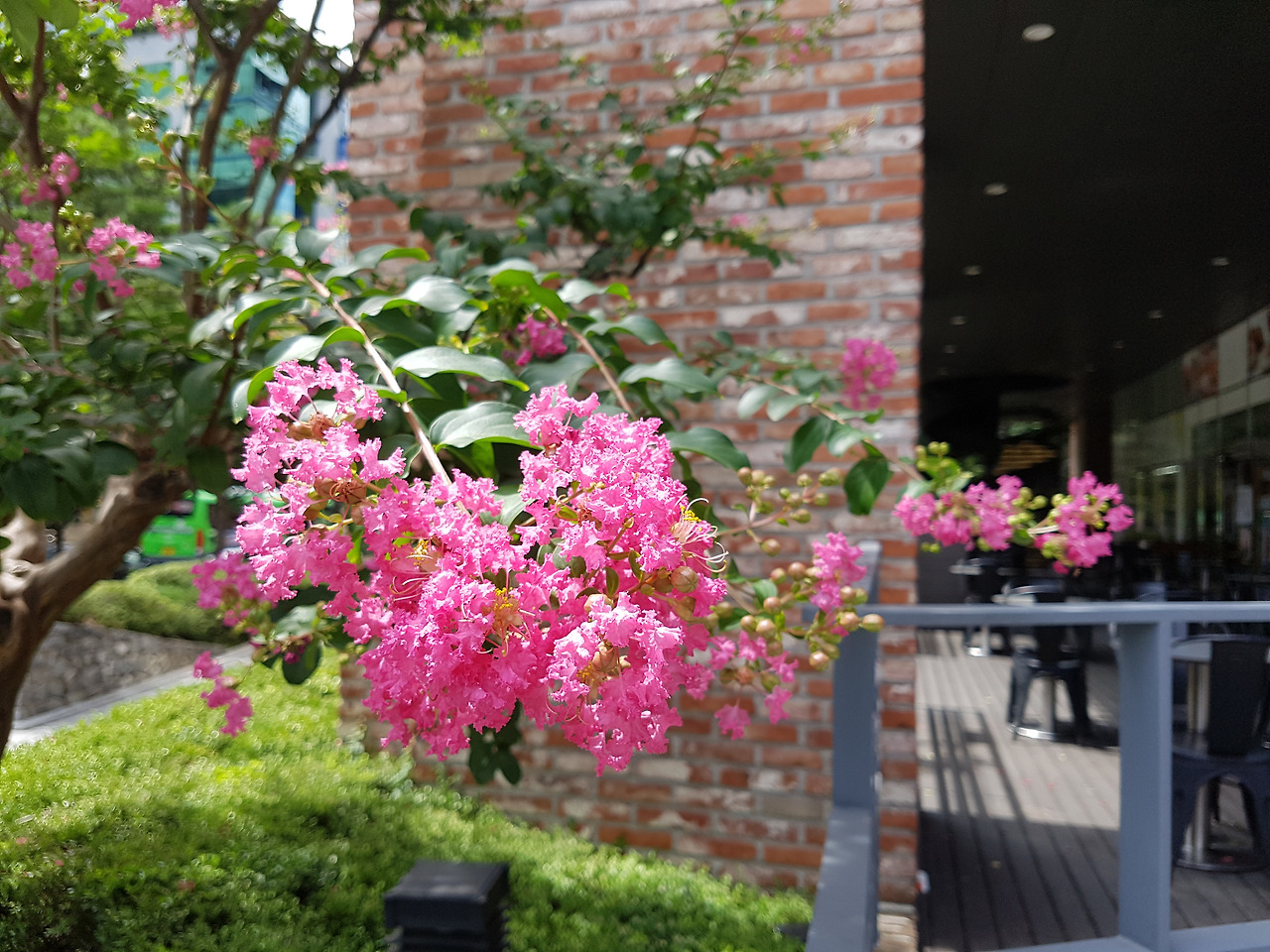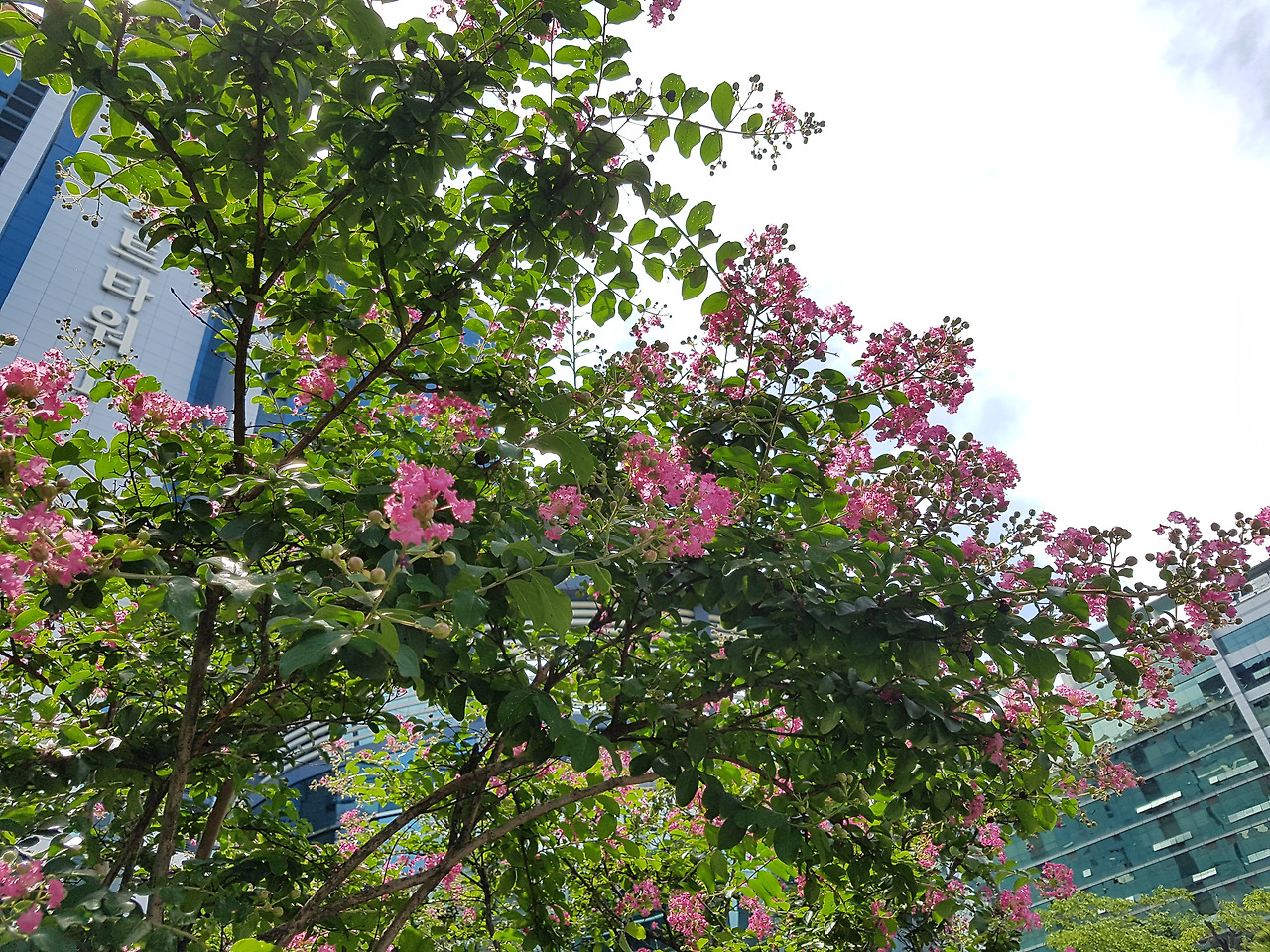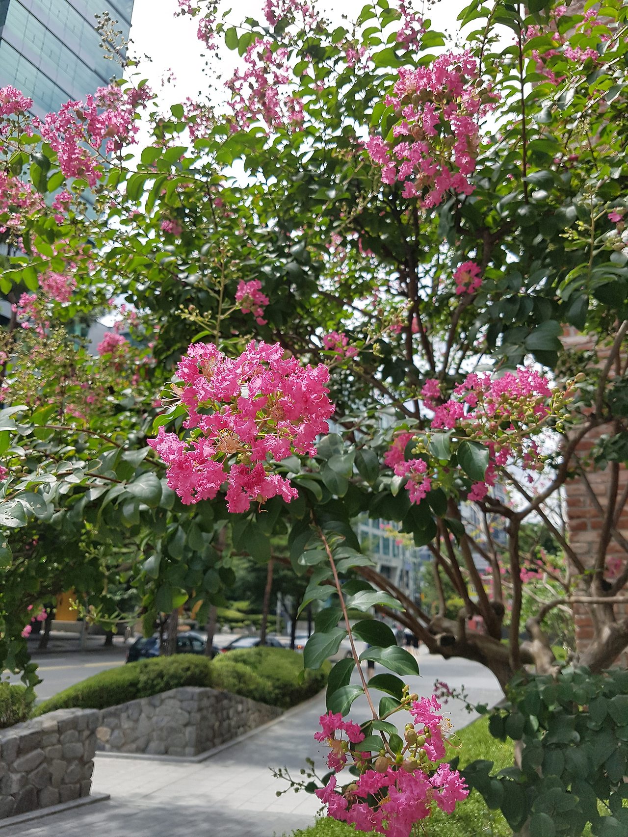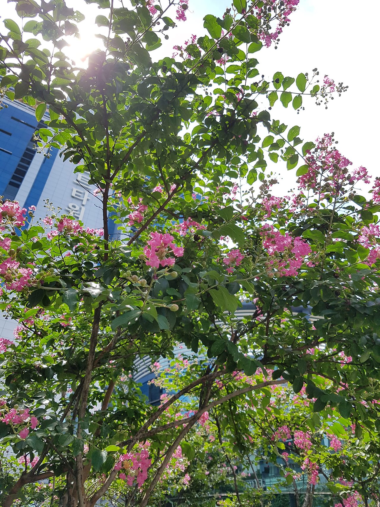 배롱나무 분홍꽃이 활짝! 피었다. 우와... 여름이다. 더워도 너무너무 더운 한여름이다. 너를 보니 진짜 여름이구나 싶다. 배롱나무야. 분홍꽃아.. 100일간 곱게 머물다가 바람 따라 가을과 함께 가렴. 2019/08..