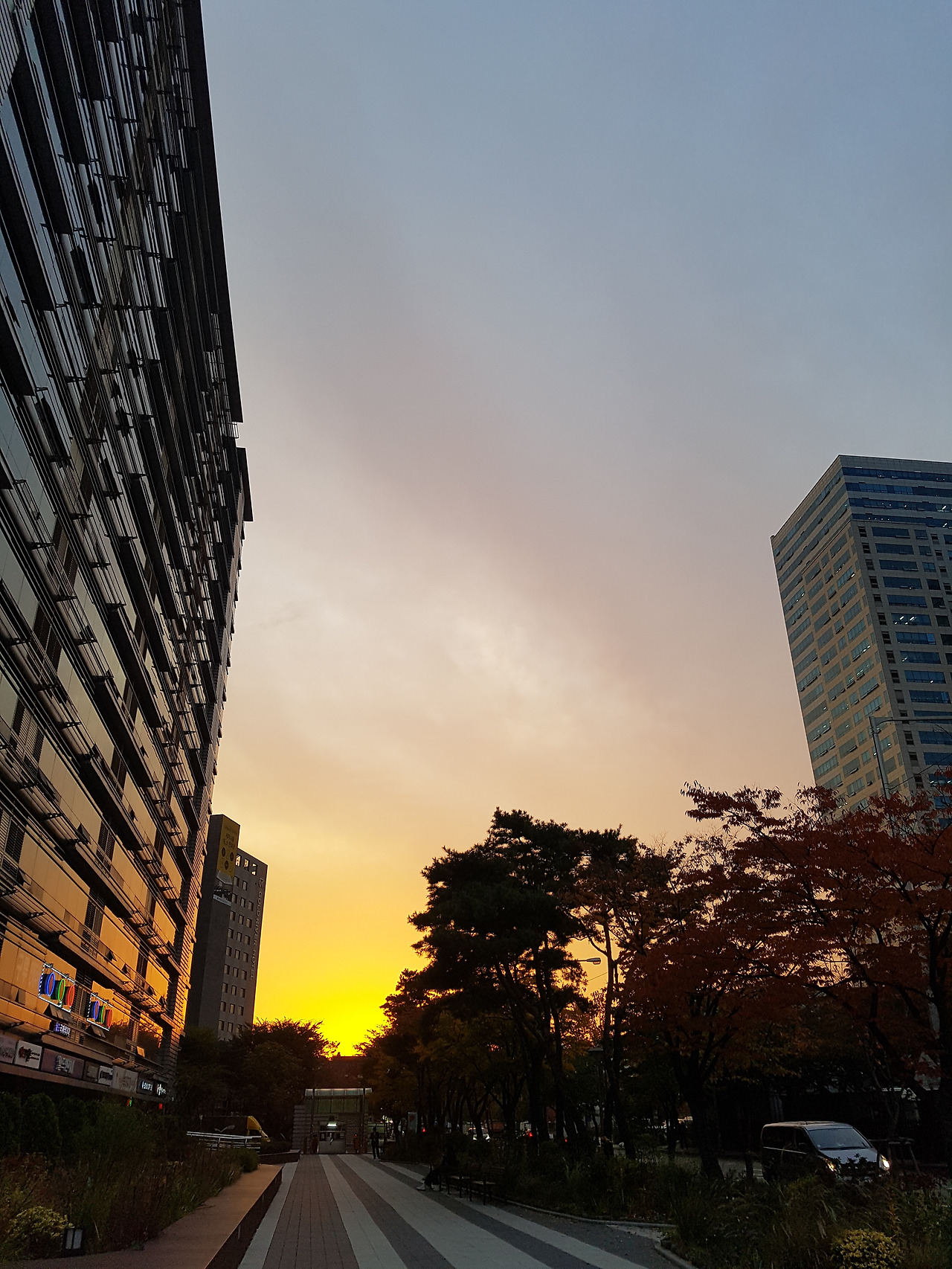 그래서 그냥 지나갈 수가 없었다. 습관적으로 핸드폰을 꺼내어 들고 사진을 찍었다. 왠지 이건 꼭 남겨야할 것 같아. 그러면서 찍었다. 실제로 본 하늘은 더 고왔는데, 사진으로 색감까지 담아내지 못했다.