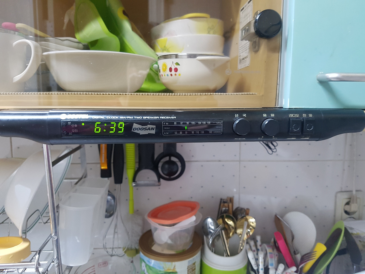 요즘 아침 8시가 되면 부엌 찬장 위 라디오를 켠다.