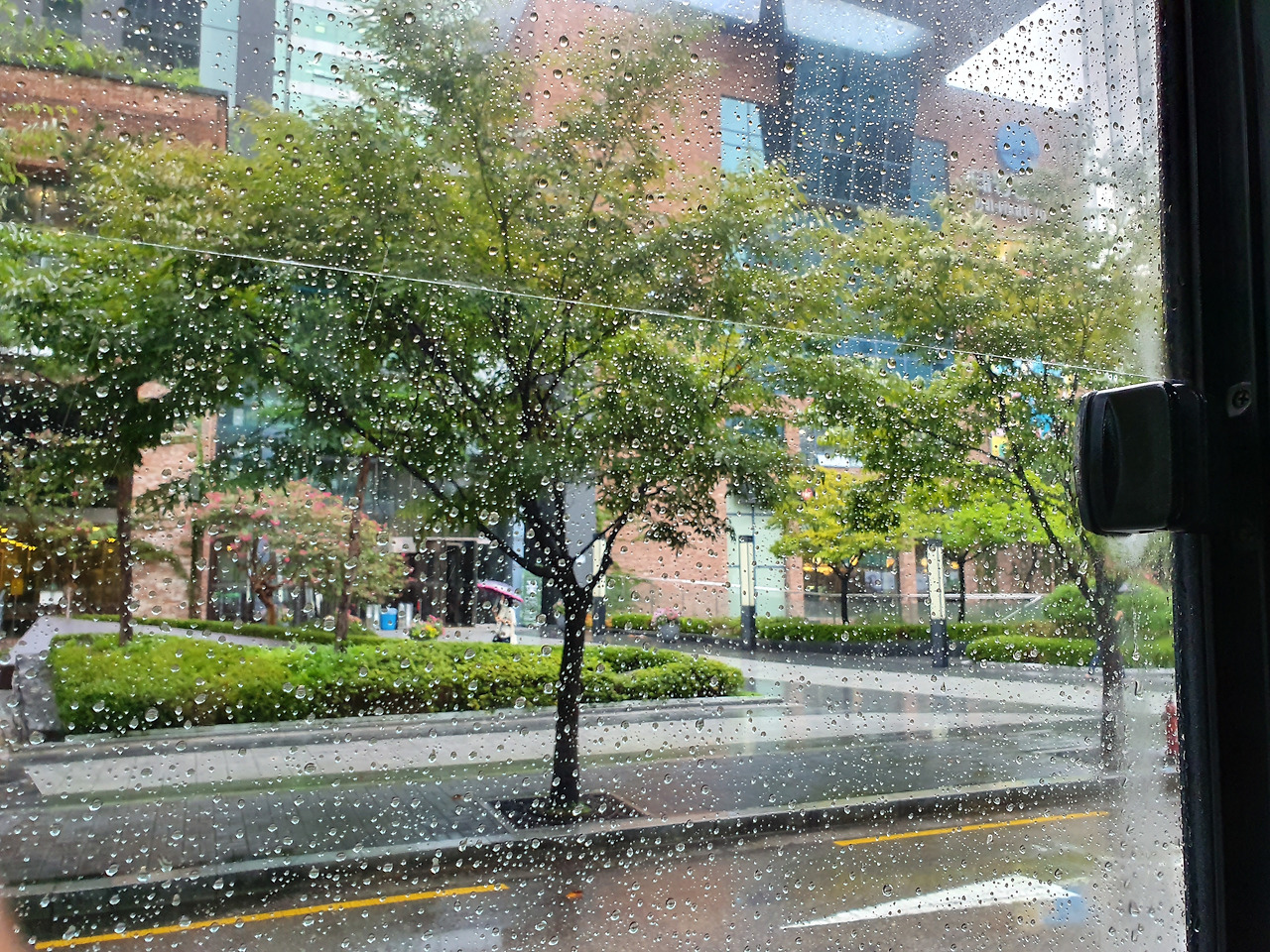 빗방울이 뚝뚝 떨어지던 화요일 점심먹고, 우산쓰고 어슬렁 어슬렁 밖을 나섰다. 비가 퍼붓는게 아니라 살짝씩 떨어지는거라 주변 둘러볼 여유가 있었다. 바닥에 고인 물 위에 만들어지는 원이 보기 좋았다...