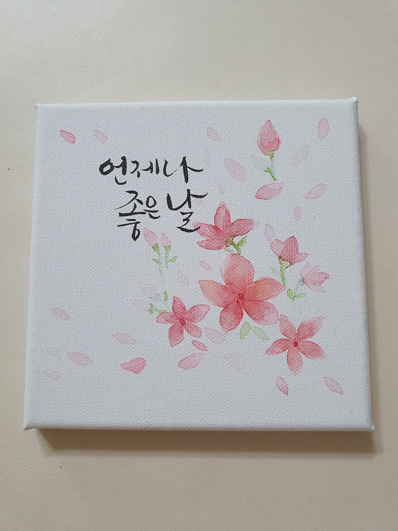 [고급반11회]한국화 물감, 그림 배우기(4) : 글씨와 그림 조합 연습(2) 고급반 11번째 시간. 지난번과 같이 글씨와 그림 조합하는 연습을 했다. 선생님께서는 그림의 색깔이 너무 알록달록하다고 ��