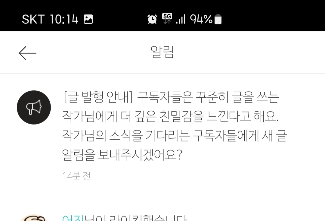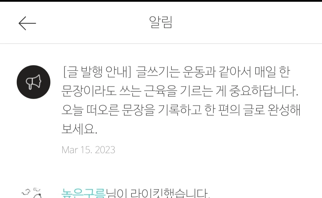 글 안 쓰면 보름에 한 번씩 오는 '새로운 경고메시지'와 함께