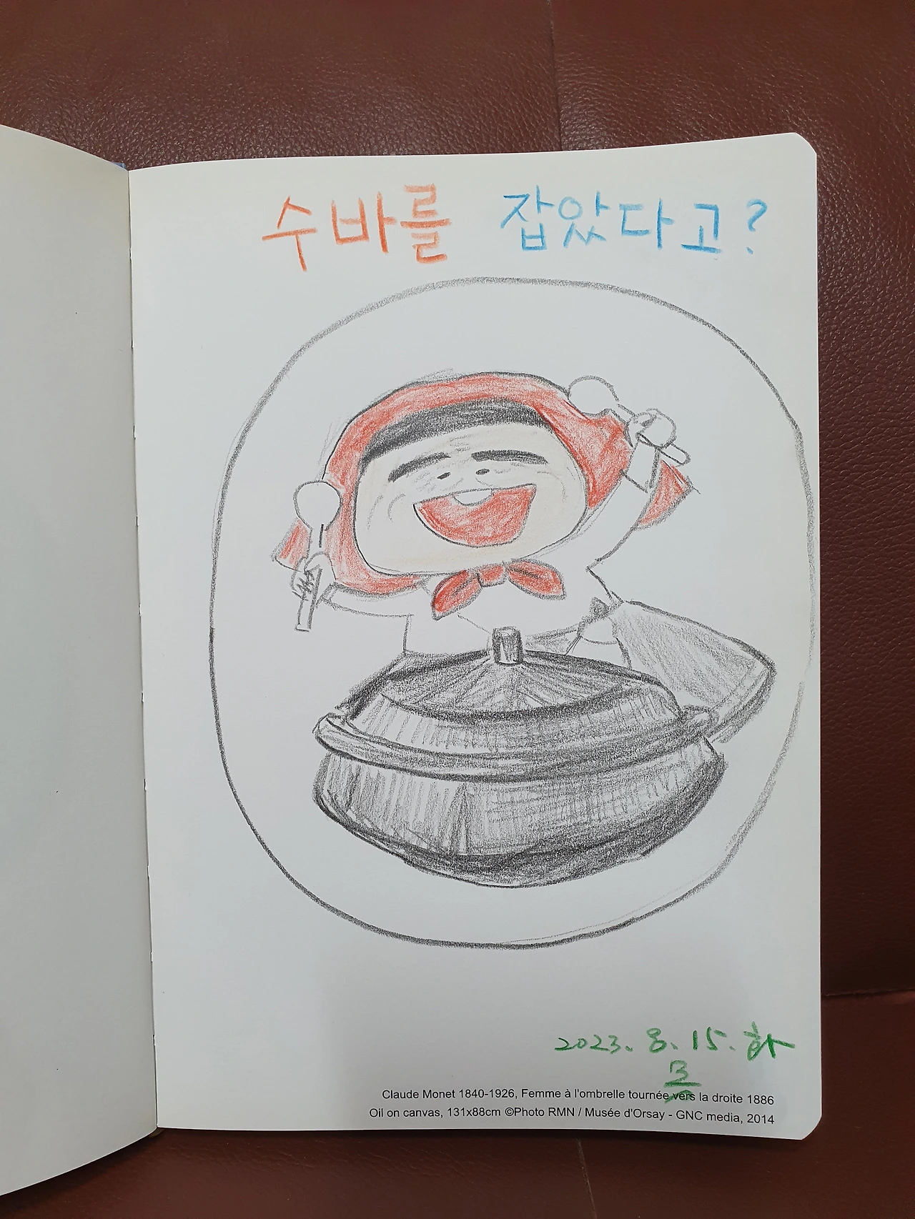 그림책 <태양 왕 수바> 속 할머니를 따라 그렸다. ⓒ청자몽 ( 《태양 왕 수바:수박의 전설》, 이지은, 2023, 웅진주니어 )