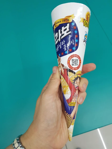 브라보~! 내 인생 : 45주년된 부라보콘과 시원한 냉면과 함께 더워서 편의점 갔다가 "45주년 기념" 로고가 크게 박힌 부라보콘을 샀다. 당연히 기념샷도 찍었다. 오랜만에 보는 부라보콘이 세상에