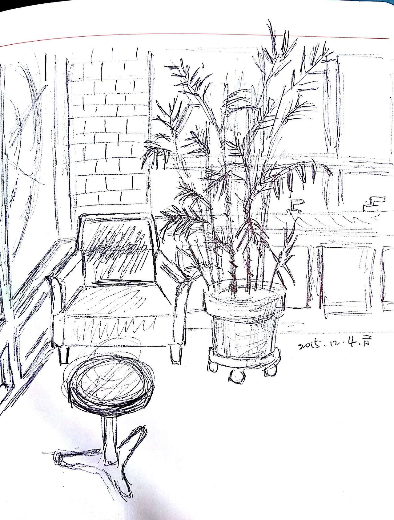 습작, 까페 그리기 냅킨에 그린 그림.까페에서 호젓하게 차를 마시던, 한량같던 때에 그린 그림이다. 끄적끄적 볼펜으로 대충 그리면서 그래도 좋았다. 다이어리에다가 그린 그림.그러다가 다이
