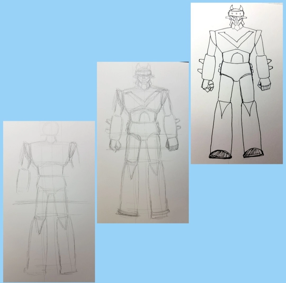 어느 날, 큰아버지 아들 다시 말해 집에 놀러 온 사촌오빠가 태권 V를 그려줬다. 얼굴만 그렸는지, 몸통까지 다 그렸는지 그것까진 생각나지 않지만... '머리'는 확실히 기억이 난다. 멋있다. 진짜 멋있었다. 그때 반한게 분명하다. 이후 태권 V 머리만 열심히 따라 그렸다. 질릴 때까지 계속 계속 그렸다. 손으로 그리고, 마음에도 새겼다. 그때부터였다. 로보트는 멋진 것이라고 생각한 게..