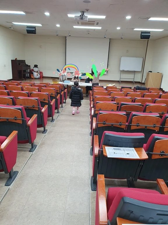 화살표를 따라 들어가니 작은 강당 같은 곳이 보였다. 어서 오세요! 선생님 한분이 반갑게 맞이해 주셨다. 여기서 이걸 써주시고요. 학생은 저기 앞으로 가볼까? 하면서 아이에게 앞쪽으로 가라고 알려주셨다. 아이는 혼자서 뚜벅뚜벅 앞으로 걸어 나갔다.