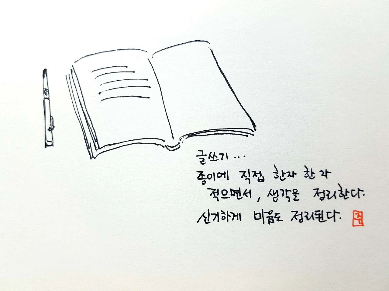 원래 쓰기는 종이에 써야 제맛인데, 어느새 타이핑에 익숙해져 버렸다. 이러다가 '글쓰기'가 아니라 '글자 입력하기'라고 바꿔 불러야 하는 거 아닐까? 싶기도 하다.