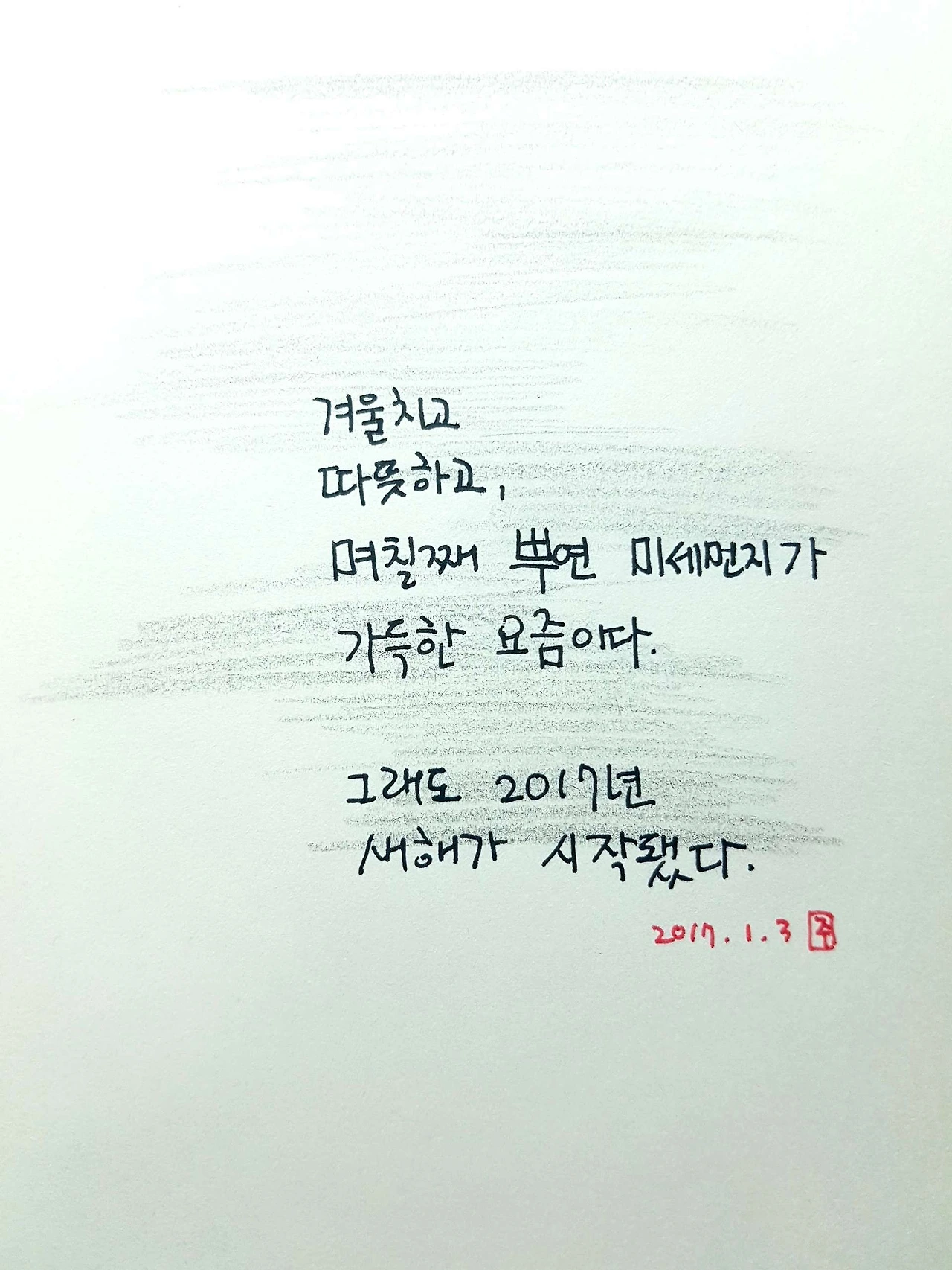 뿌연 미세먼지로 1년 내내 고생했던 생각도 슬며시 난다. 2017년은 미세먼지와 함께 뿌옇게 시작했다. 그랬다.