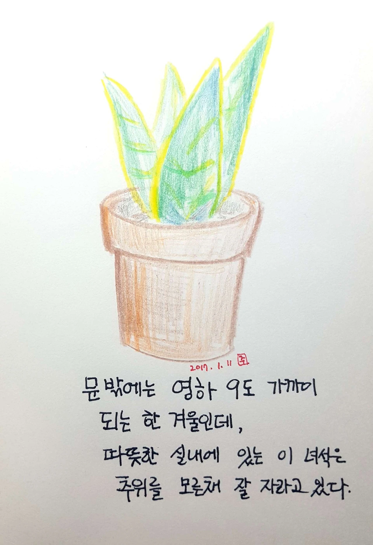 그런 와중에 뜬금없이 물 관리만 잘하면 죽지 않는 불사신, 산세베리아가 고마웠다. 겨울에는 실내가 건조하기 때문에 더 조심해서 보살펴야 한다.