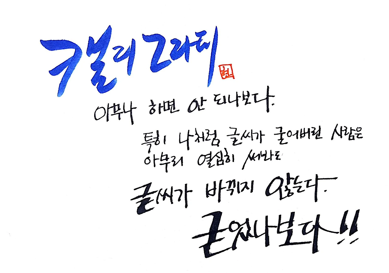 게다가 더 깊이 들어가면, 캘리그래피 역시 일종의 "상품"이 돼야 하는데, 역시 캘리그래피 부문에서도 '대중성'이 부족함을 알게 됐다. 숱하게 볼 수 있는 멋진 캘리그래피 글씨들 앞에 한숨을 쉬었다.