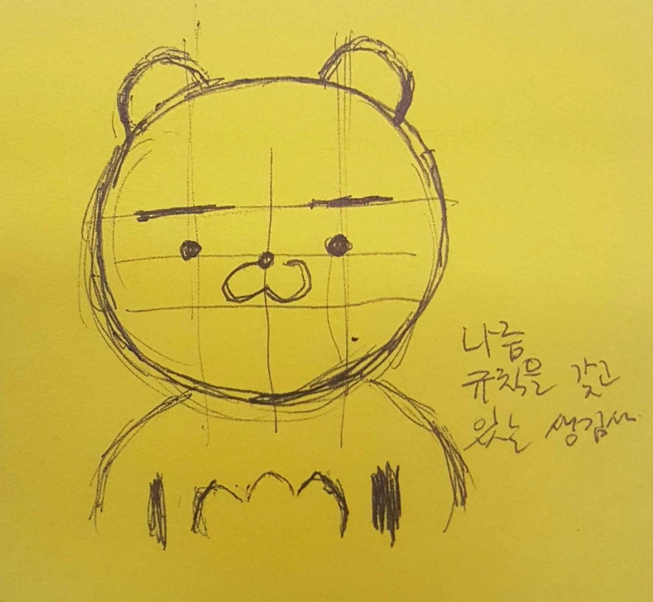 귀여운 녀석인데 막상 그리면 안 이쁘게 나오길래 고민하다가 유심히 관찰했다. 얼굴엔 나름의 비율이 있었다.