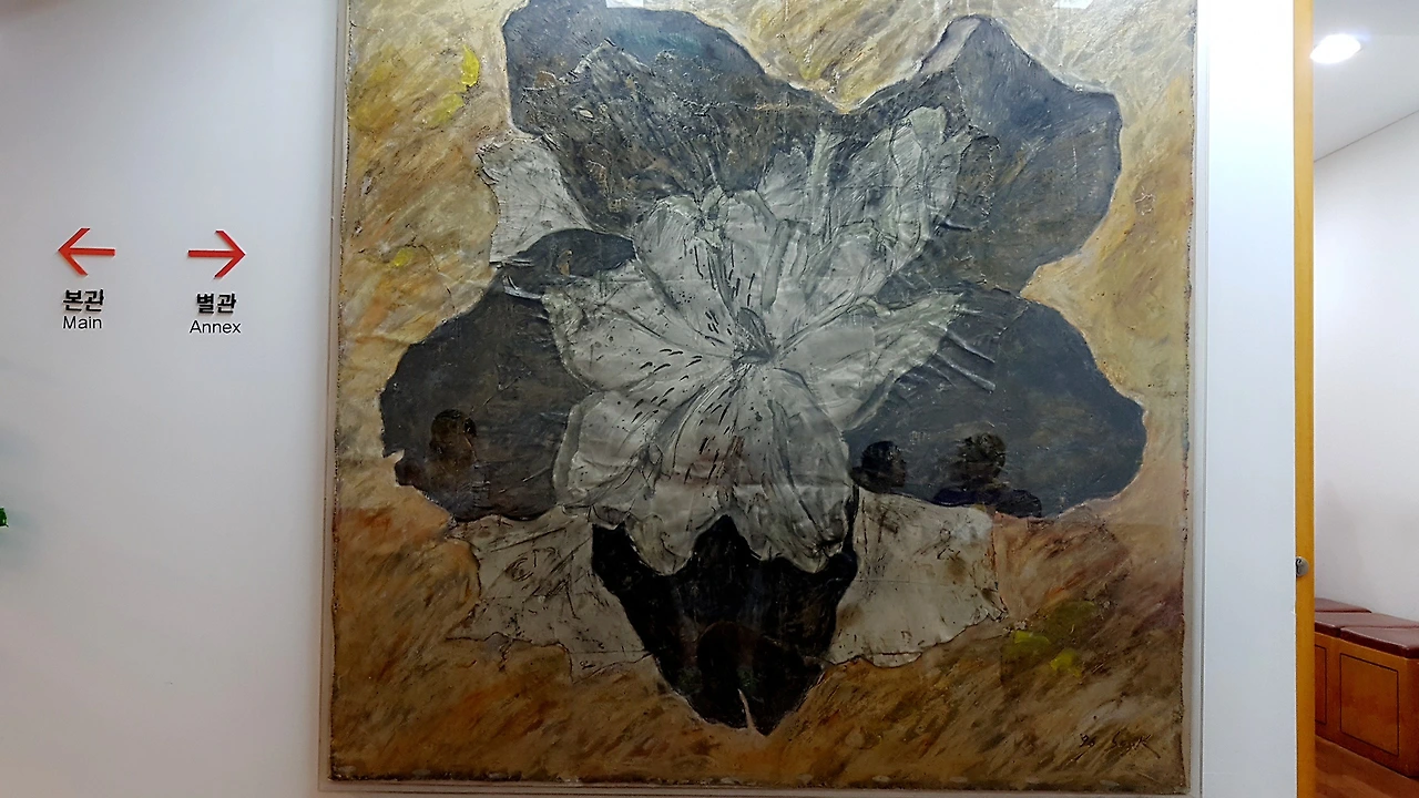 벽에 붙어 있는 큰 꽃 그림 액자 따라 그리기