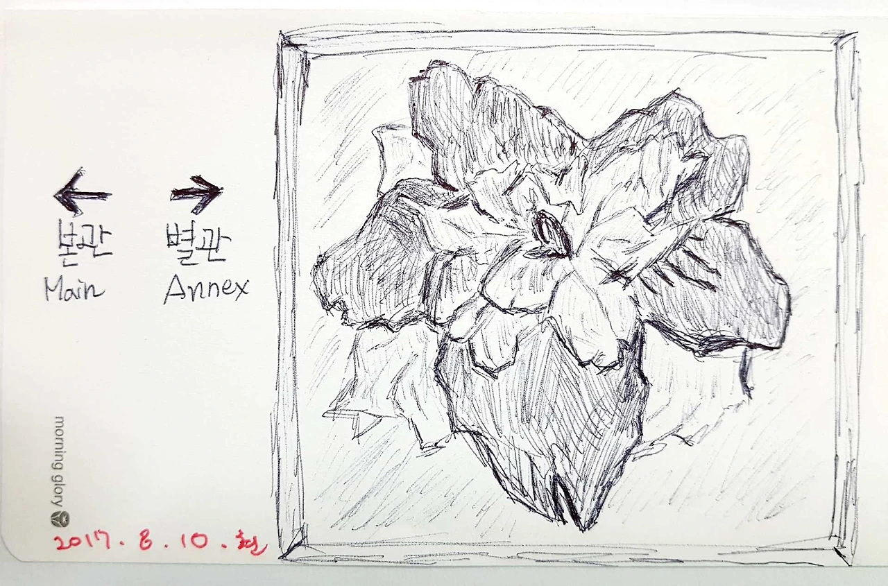 병원에서 초음파 진료를 꽤 오래 기다리게 됐다. 뭘 할까? 하다가 눈앞에 보이는 벽면에 큰 꽃 그림 액자를 따라 그렸다.