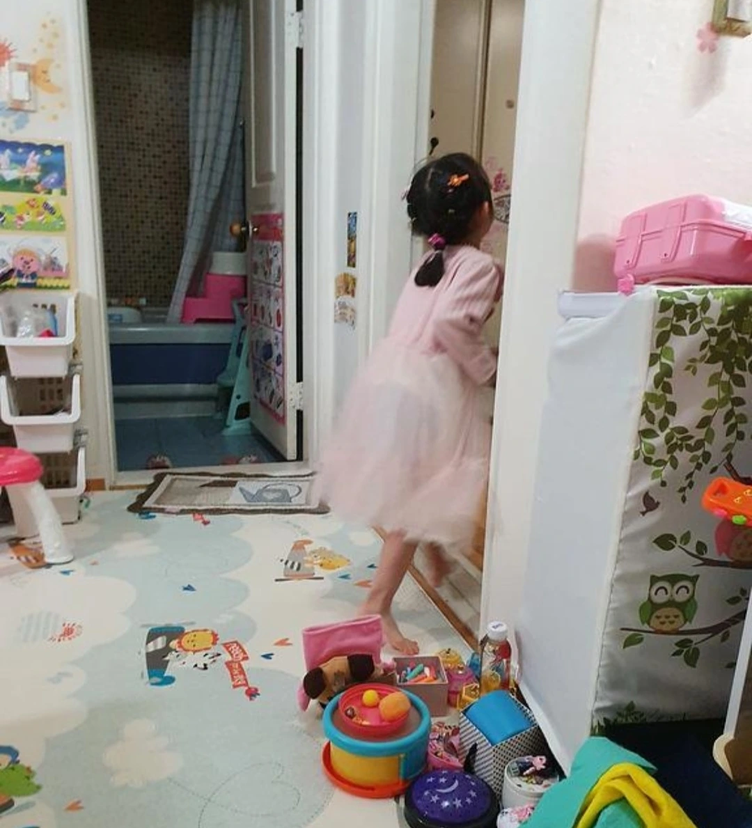이미 아빠에게 '아빠가 더 힘이 세다'는 말을 들은 딸은 싫다고 토라집니다. 으... 남편은 딸을 데리고 방 안으로 들어갔습니다. 일단 저를 피해서 대피를 한 겁니다.