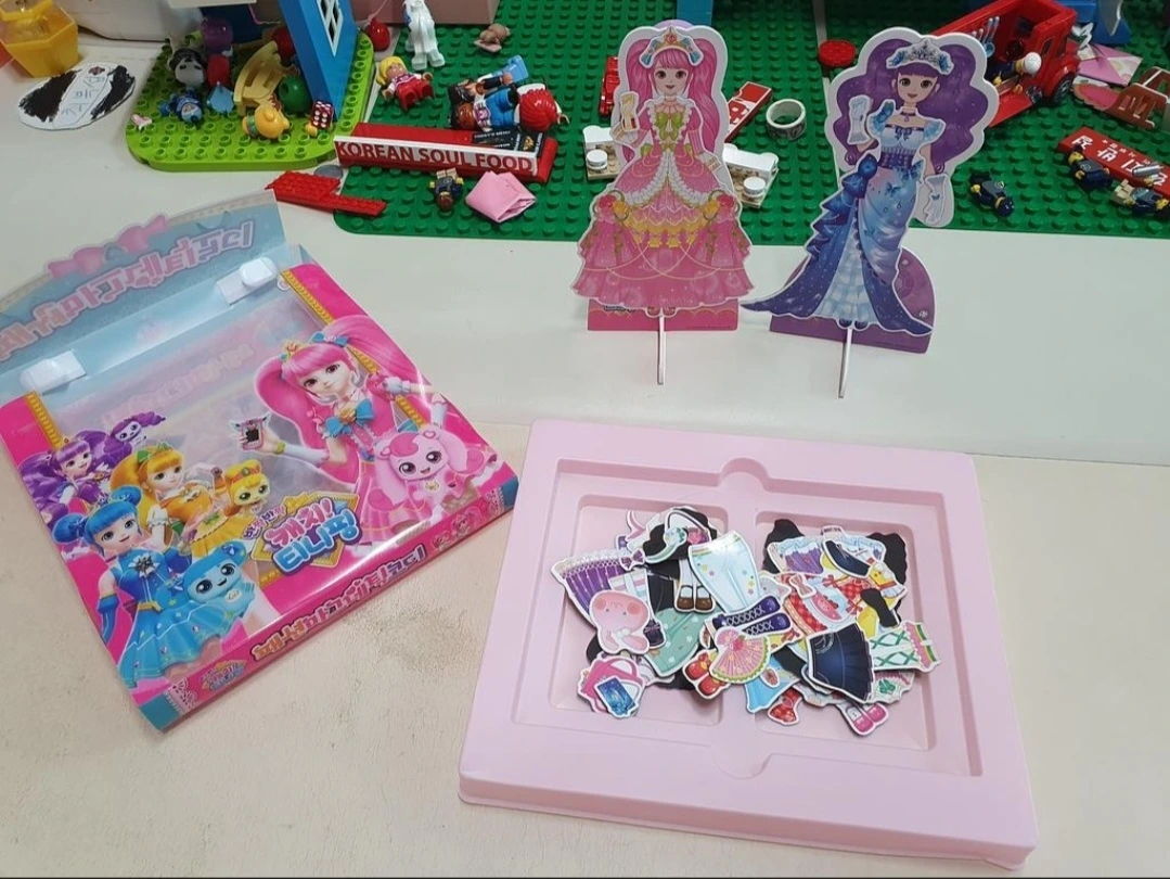 세상이 좋아져서, 이렇게 자석으로 인형 옷 갈아입히기도 할 수 있네요. 재밌는 장난감이라는 생각이 들었습니다. 몇십 년이 흐른 후에 제 딸이, 제 나이쯤 되면 이 자석인형옷 놀이도 '추억 속의 놀이'가 되겠죠? 재밌습니다.