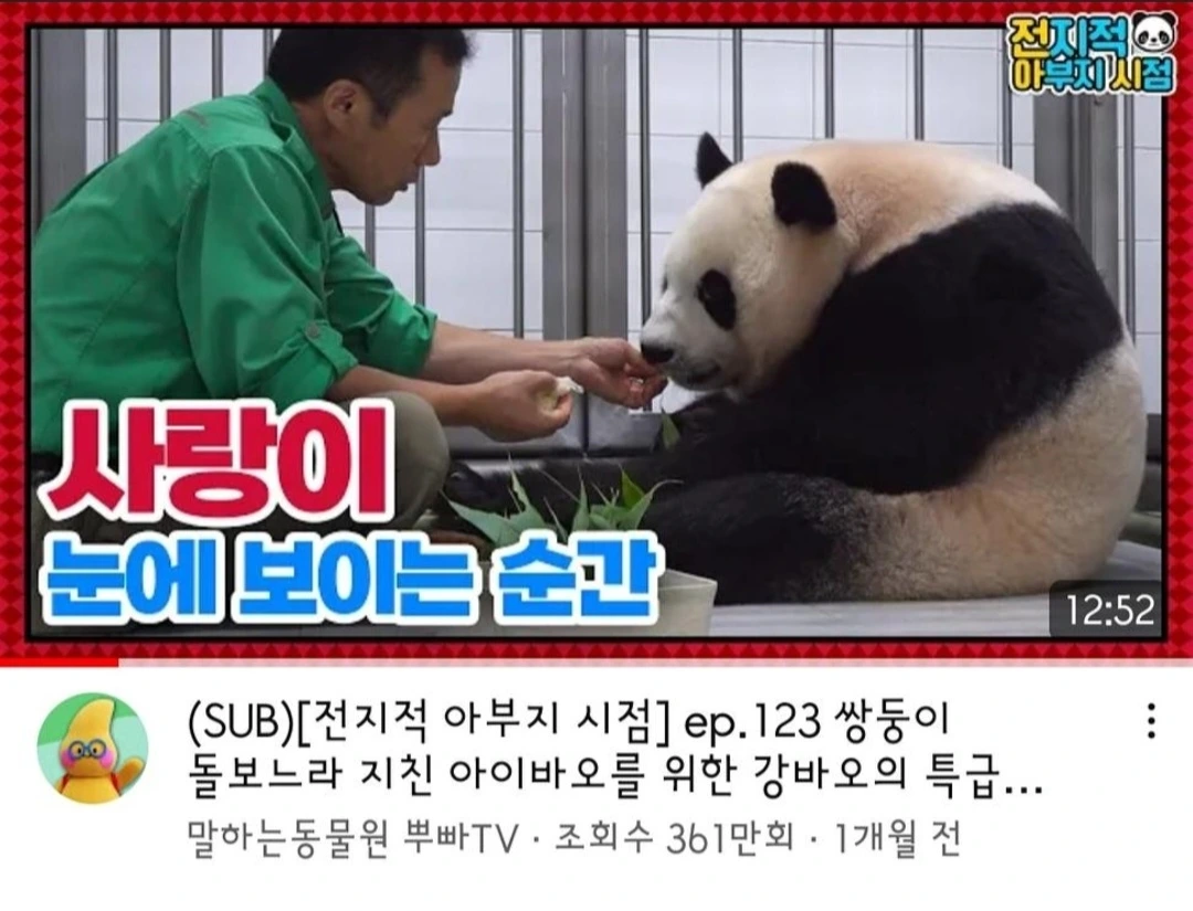 아이바오를 처음 본 건, 3년 전 첫째인 푸바오(첫째 판다)를 낳을 때였다. 사실 그전에 우리나라에 대왕 판다 부부가 있는지도 몰랐다. 그러다가 우연히 유튜브 피드에 뜬 출산 동영상을 봤다.